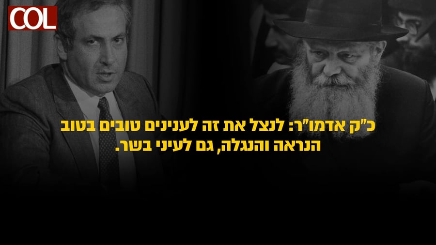 הרבי: "לנצל את זה לעניינים טובים בטוב הנראה והנגלה גם לעיני בשר". נתניהו: "נכון, הכאב זה הצד השני של השמחה, אין שמחה בלי כאב".