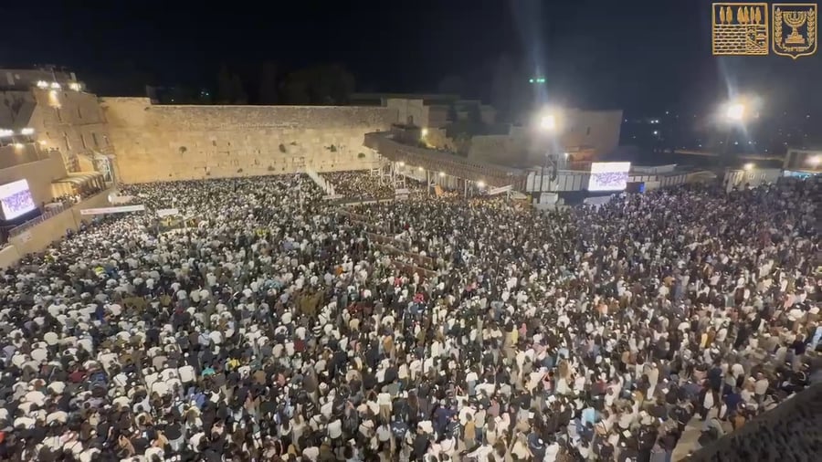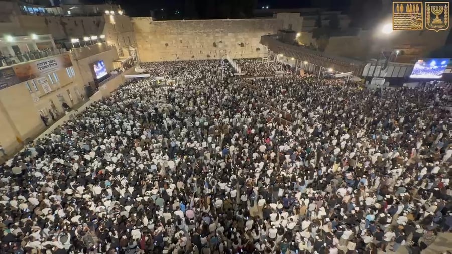 50 אלף איש השתתפו הלילה (א') ערב ראש השנה תשפ"ו במעמד הסליחות המרכזי והתרת נדרים והתרת קללות ברחבת הכותל המערבי.