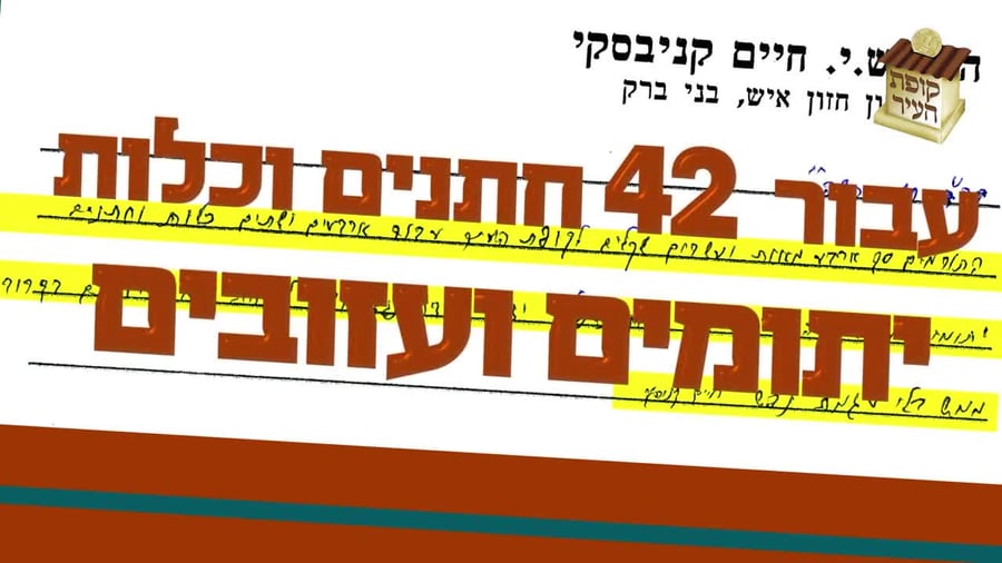 הגזירה המסעירה של מרן שה"ת: "כל התורמים סך 420 ש"ח עבור 42 כלות וחתנים יתומים ועזובים הנישאים בחודש חשוון תשפ''א יזכו מידה כנגד מידה לעשות שמחה בביתם בקרוב בלי עגמת נפש.