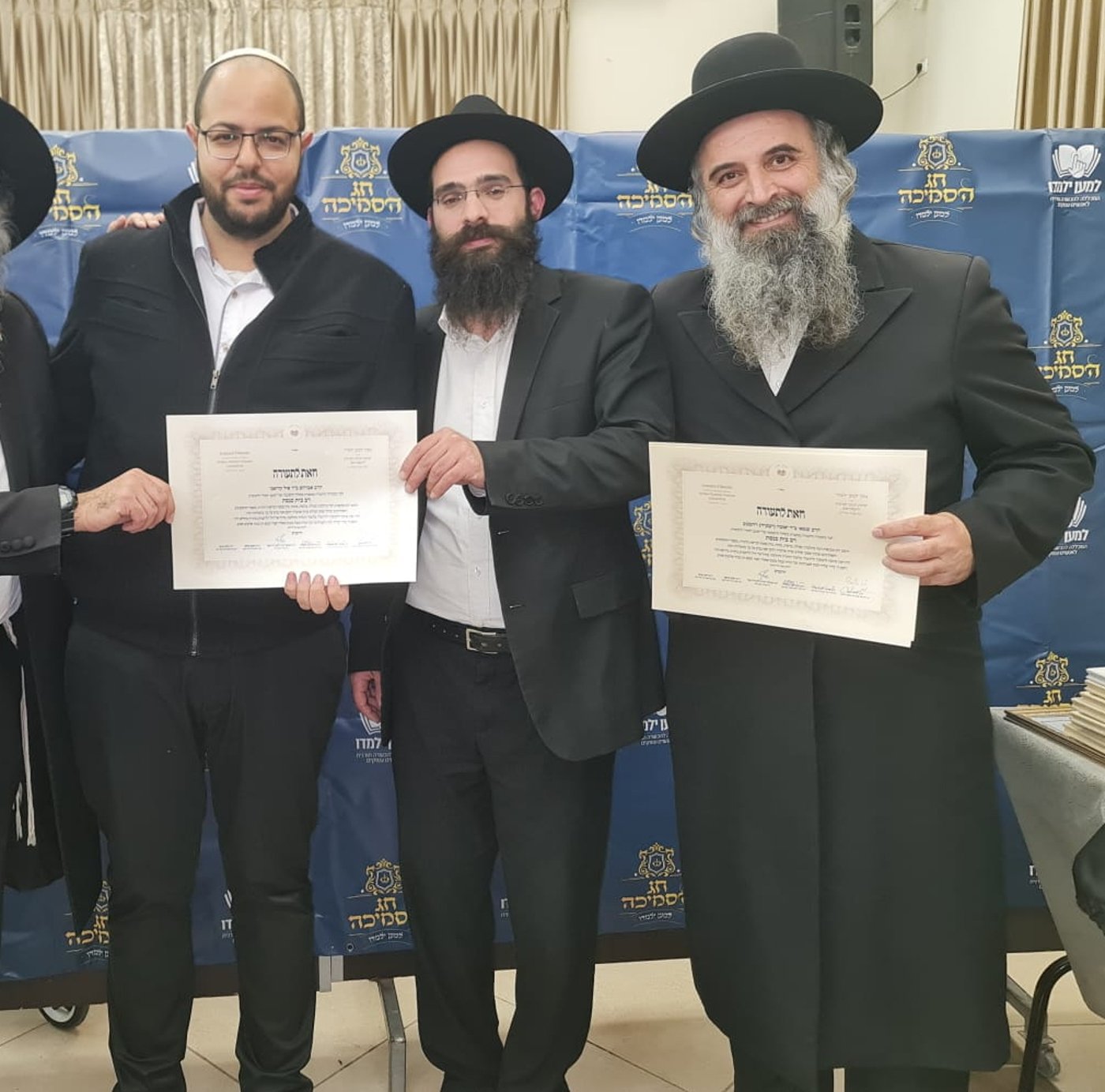 לאחר דברי הברכה, האווירה התחשמלה, הנגן פצח במארש חסידי, והמנחה הרב אלישע קצבי קרא בשם הרבנים החדשים, אשר עלו בזה אחר זה אל הבמה וקיבלו את התעודה מידי הרבנים שליט"א, ובנפרד הצטלמו עם המשפחה הנרגשת בשמחתה של תורה.