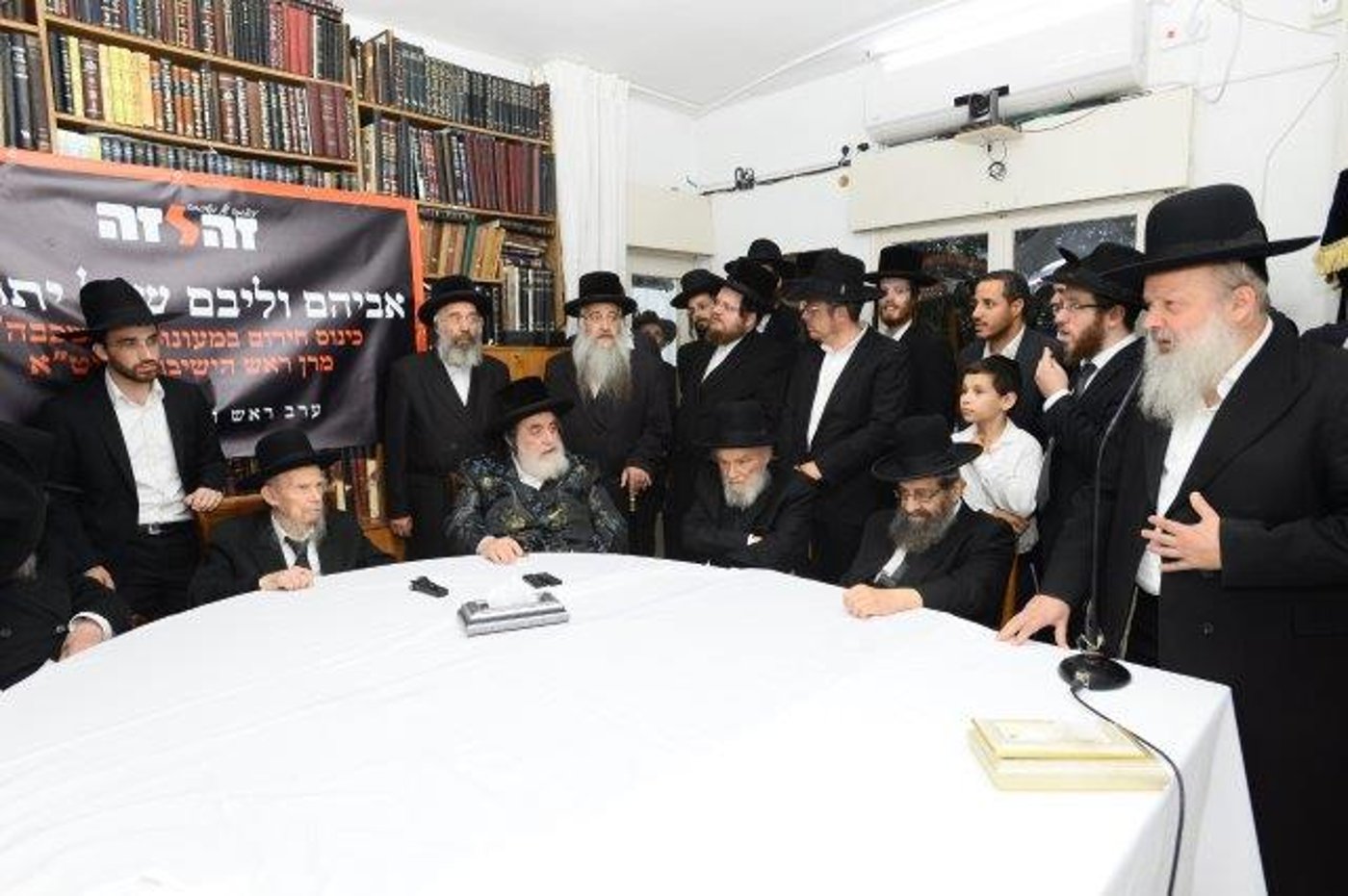 במעמד המיוחד במעונו של הגרי״ג אדלשטיין השתתפו: הגר״ד לנדו, האדמו״ר מויזניץ, הגרמ״ה הירש, האדמו״ר ממודזיץ, הגר״ד כהן והגר״מ בן שמעון רב העיר ב״ב.