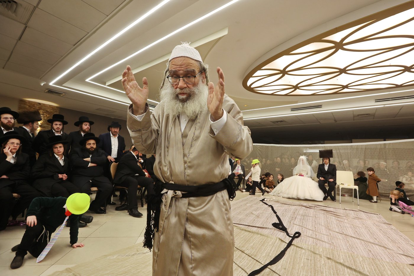 בעיה"ק ירושלים נערכה שמחת החתונה לנכדת המקובל הצדיק רבי גמליאל רבינוביץ ראש ישיבת 'שער השמים' | בעת המצווה טאנץ, חלץ המקובל נעליו, ופיזז עם הדסים כמנהגו לשמח חתן וכלה לקול מצהלות ההמונים שגדשו את אולם השמחה | יעקב לדרמן השתתף ותיעד (חרדים)
