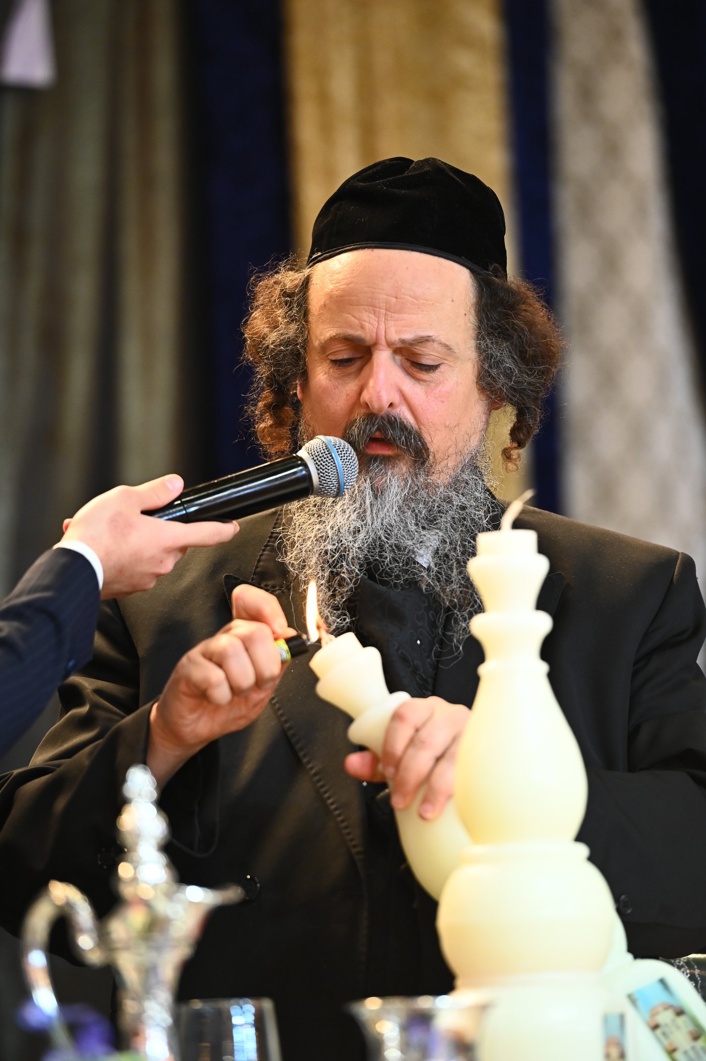 עטור במלבושי שבת לתפארה היות ונמצא בתוך שבעת ימי המשתה לנישואי נכדתו, הדליק האדמו"ר ממכנובקא בעלזא את נר הראשון של חנוכה בהיכל בית מדרשו הגדול בבני ברק | במעמד השתתפו רבנים רומי מעלה המקורבים לחצר הקודש | לאחר המעמד ערך הרבי טיש לחיים כנהוג, ונשא אמרות קודש (חסידים)