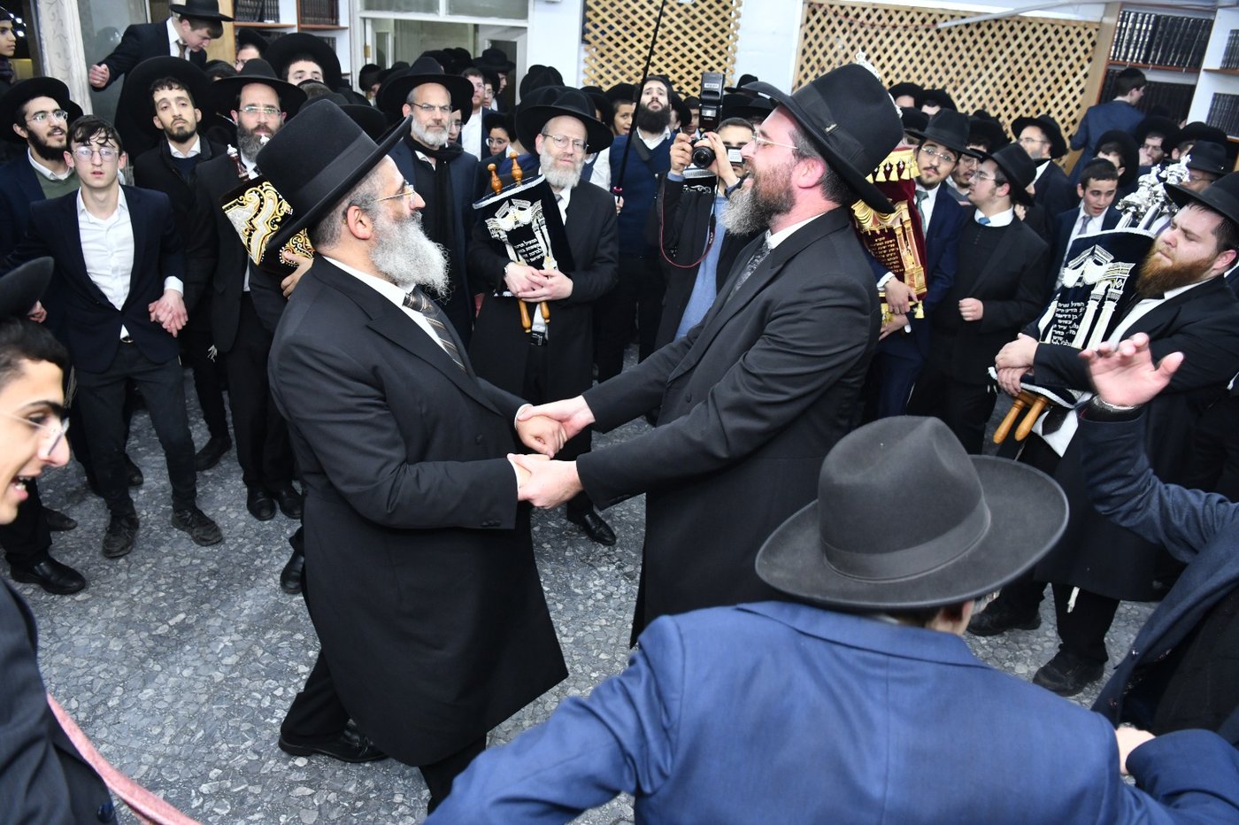 לאחר מעמד סיום כתיבת האותיות יצאה התהלוכה לרחובה של עיר, ספר התורה הובל בתהלוכה מפוארת תחת חופת השמים מקושטת בהדר והוד, כשמאות ילדי החמד מפזזים עם לפידי אש בידיהם.
