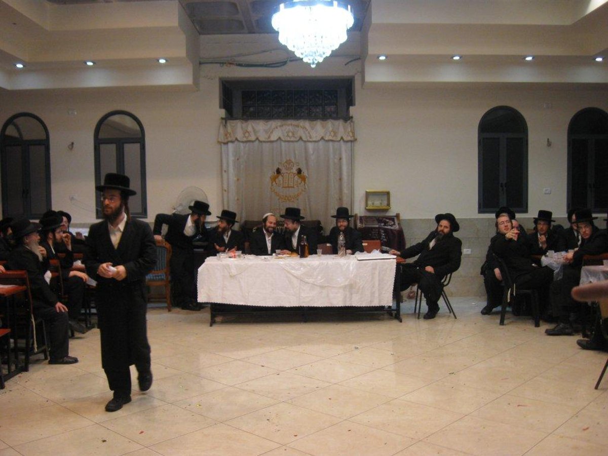 וכך, בתוך כמחצית השעה אורגנה בבית המדרש סעודה שלמה לחתונת בעל התשובה ורעייתו הגיורת בהשתפות כל חברי קהילת צאנז בחיפה, בחורי ישיבת סערט ויז'ניץ, תושבים ובחורי ישיבה מהאזור.