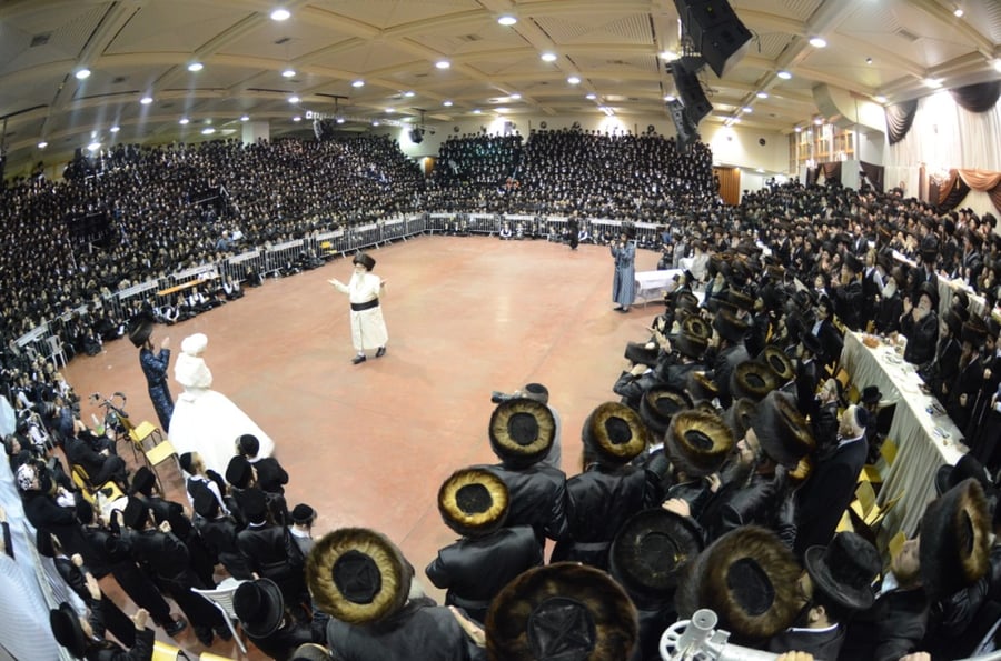 התרגשות הקהל הגיע לשיא בעת כניסתו של הרבי מצאנז לשמחת החתונה, תוך שירה אדירה של קהל ההמונים שהתרגש מגודל המעמד.