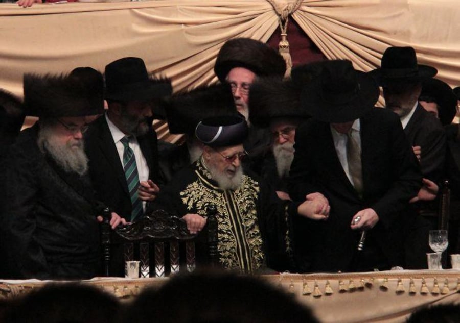מיד לאחר דבריו של מרן החל הקהל לשיר 'סימן טוב ומזל טוב' כשמרן פוסק הדור יצא מגדרו ועמד לרקוד עם האדמו"ר.