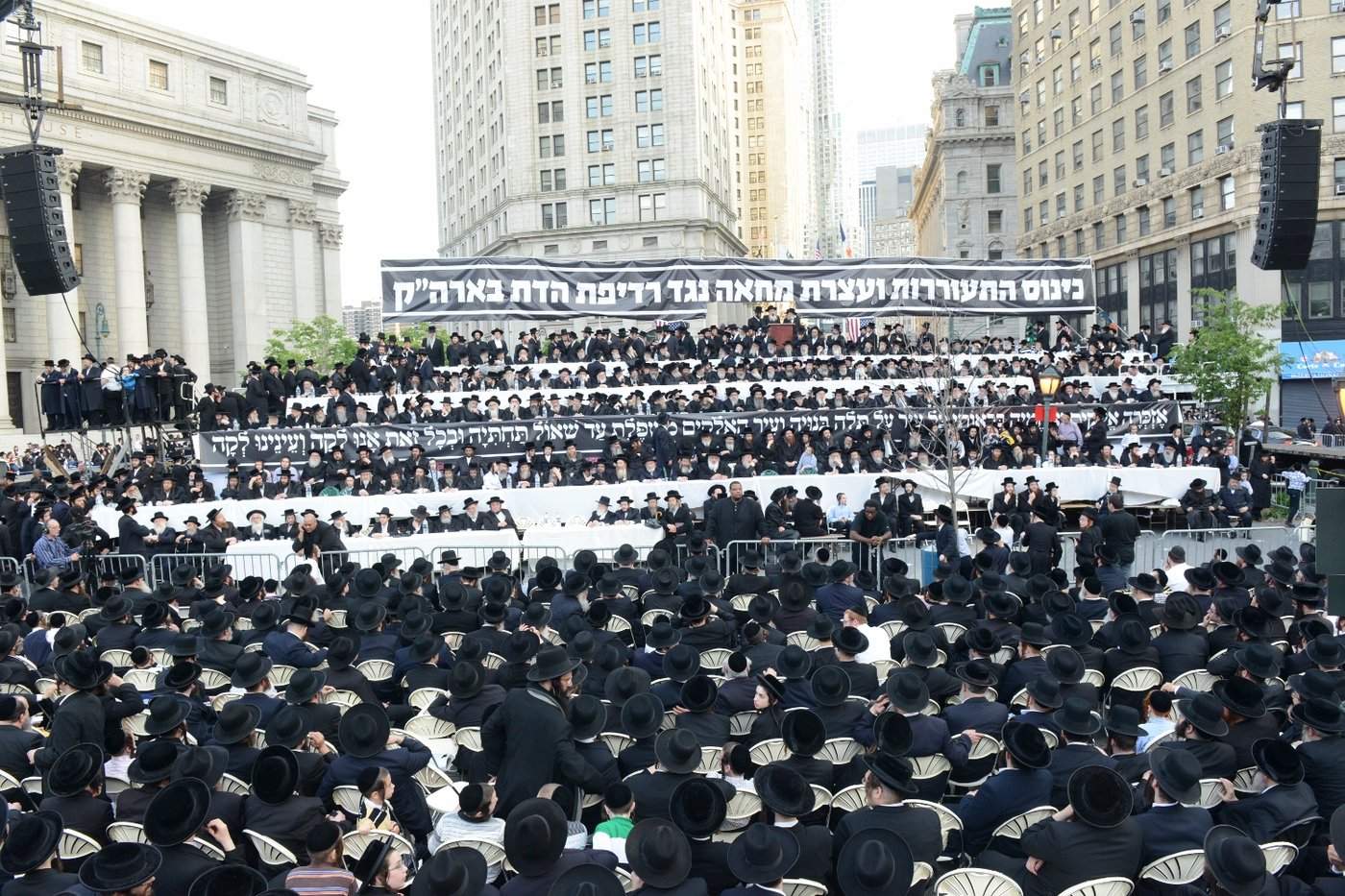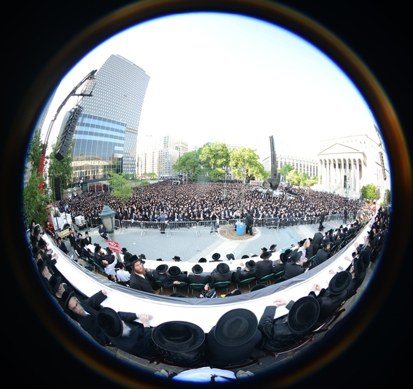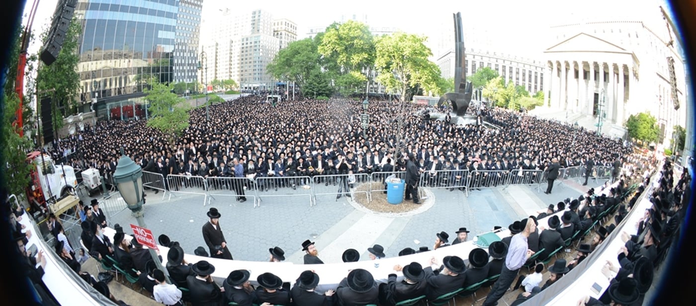 רבבות בני אדם מילאו הלילה (שעון ישראל) את כיכר פדראל פלאזה במנהטן לעצרת מחאה חריפה נגד ממשלת ישראל בעקבות גזירת גיוס בני הישיבות • גלרית ענק מהעצרת (חסידים)