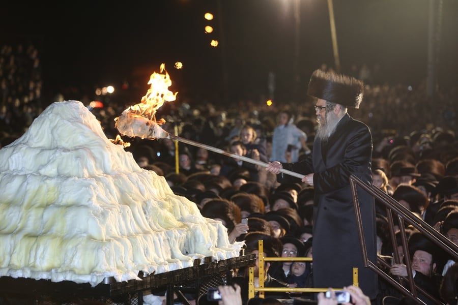 כשעתיים לאחר צאת השבת השתתפו רבבות חסידים בהדלקה המסורתית בראשות כ"ק האדמו"ר מסאטמר שנערכה ברחבת בית המדרש הגדול בקריית יואל שבמונרו.