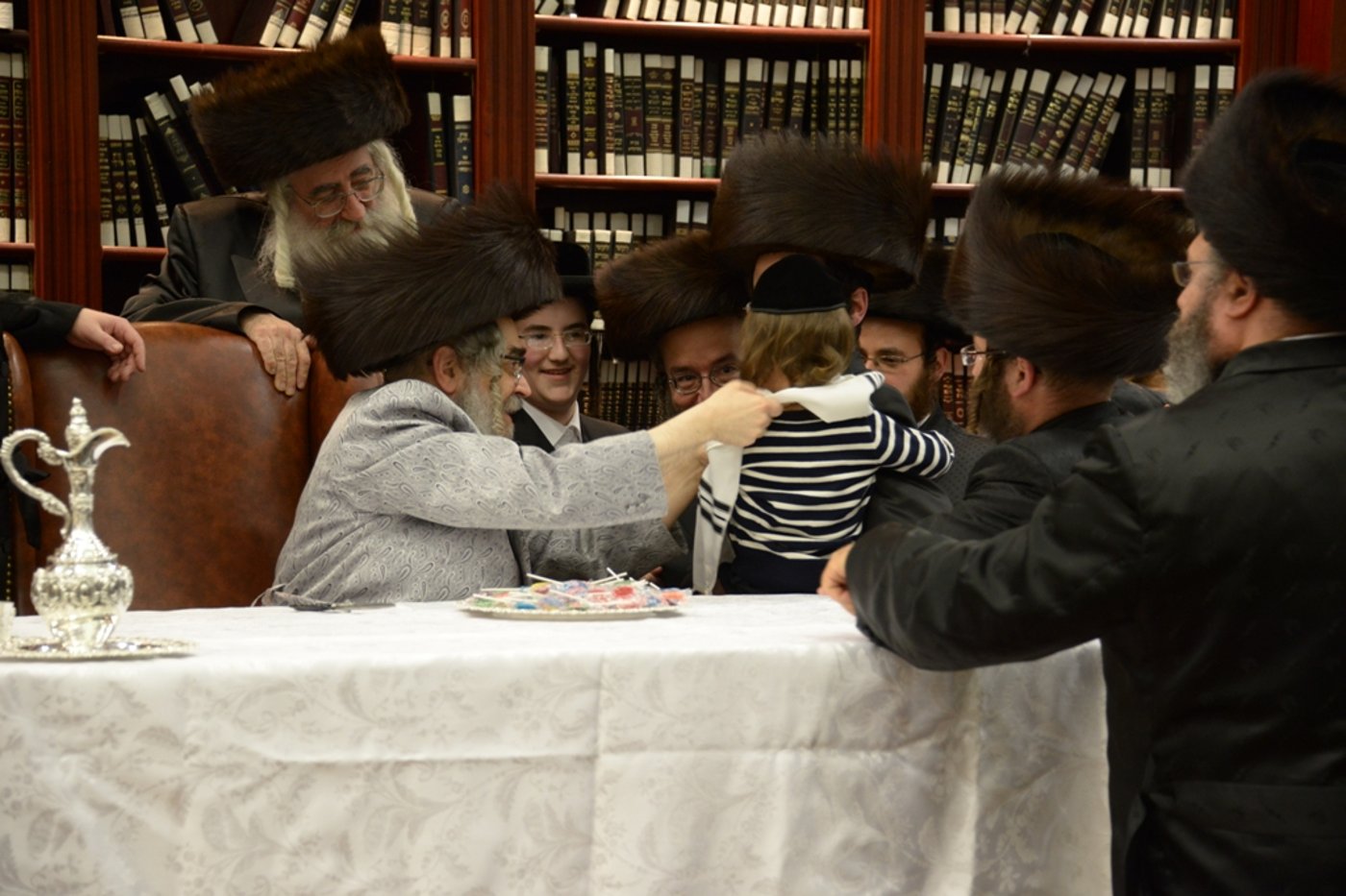 מיד לאחר תפילת ערבית והבדלה קיים האדמו"ר את טקס ה'חלאקה' וגזז את שערותיהם של למעלה מ-150 ילדים שהגיעו לגיל 3 כשלאחר מכן יצא אל הקהל הרב וערך את הדלקת המדורה.