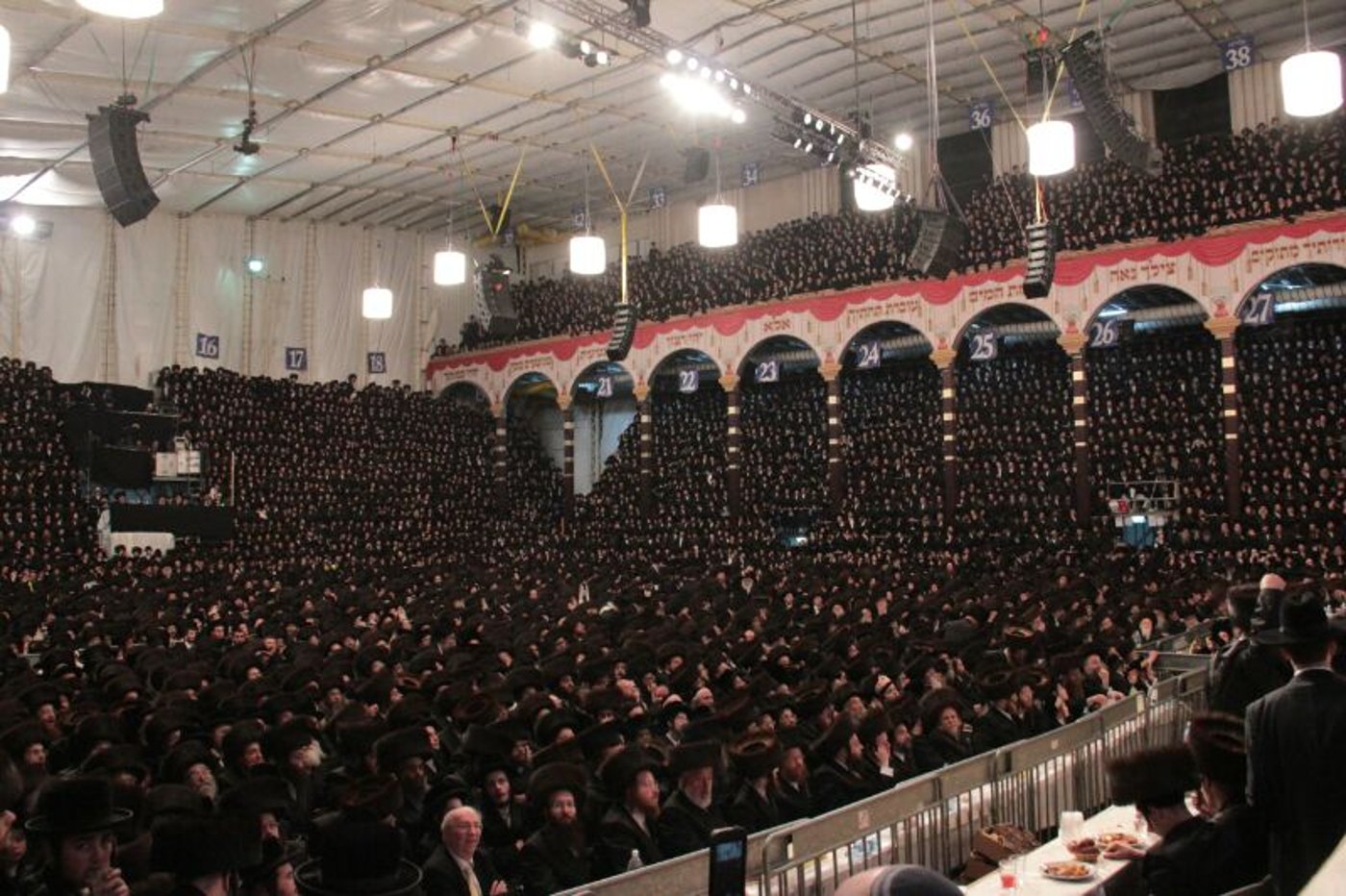 אלפי חסידים חוגגים בשעות הלילה (רביעי) את שמחת נישואי נכדת מרן האדמו"ר מבעלזא באוהל הענק שהוקם בקריית בעלזא בירושלים לרגל השמחה הגדולה.
