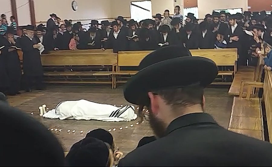 שעות ספורות לאחר הפטירה הובאה מיטתו של הרבי אל היכל בית המדרש שם התקבלה בזעקות שבר ובכי של החסידים האבלים על הסתלקותו של רבם הנערץ.