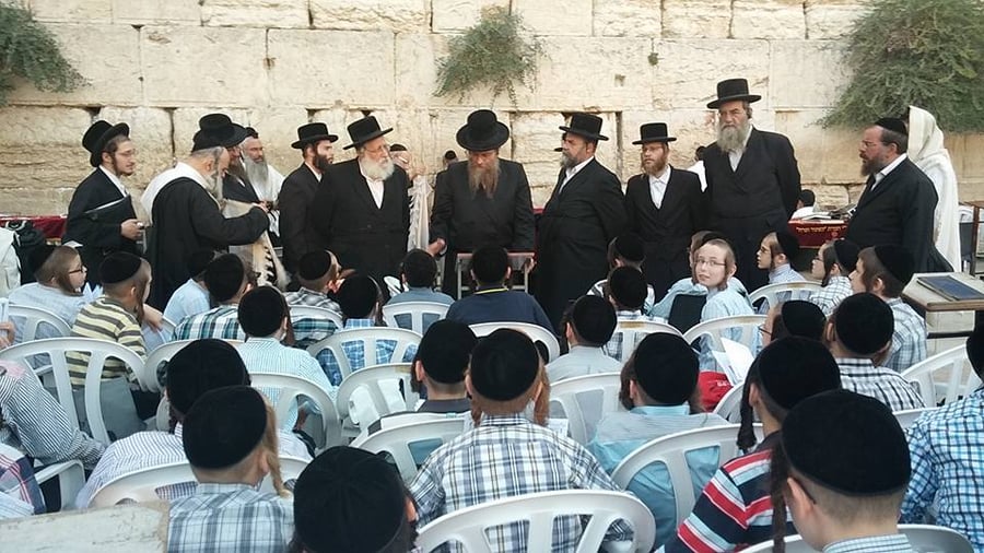 מאות מילדי הכיתות הגבוהות בתלמוד תורה ויז'ניץ בבני ברק הגיעו לפנות בוקר (שלישי) לתפילת שחרית בכותל המערבי.