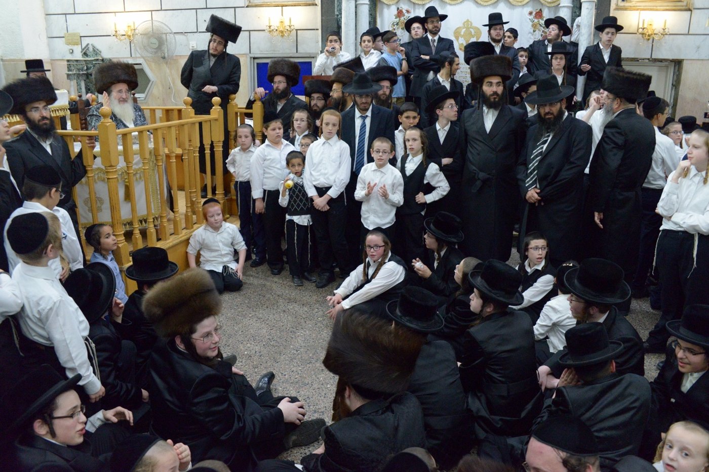 קהל רב של חסידים השתתפו אמש (שלישי) במעמד שמחת בית השואבה בחצר חסידות ספינקא בבני ברק.