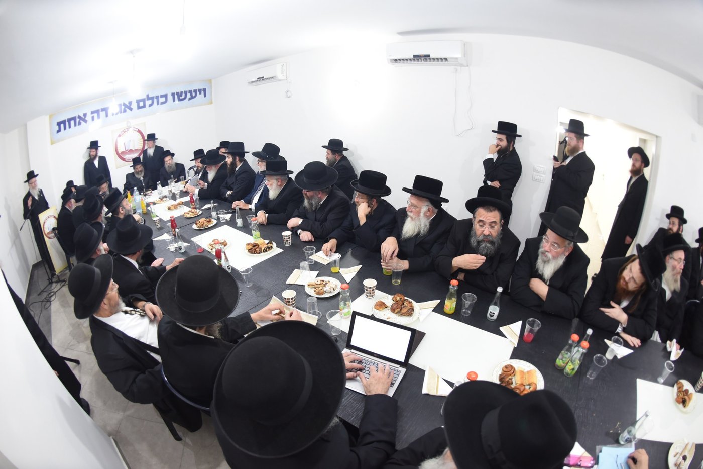 את הישיבה זימנו יו"ר אגודת ישראל, הרב יוסף קופרברג ומזכ"ל אגודת ישראל, מ"מ ראש עיריית בני ברק, חנוך זייברט.