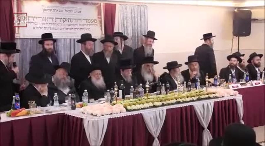 במעמד לראשי הכוללים של "מעייני ישראל", הפועלים לעידוד לימוד תורת החסידות, השתתפו האדמו"רים מבאיאן ומדושינסקיא, לצד ראשי המשפיעים החב"דיים • צפו (חסידים)