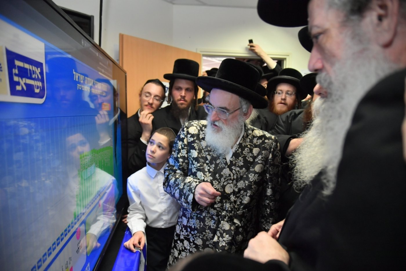 משם המשיך האדמו"ר לביקור במטה הבחירות המרכזי של אגודת ישראל שם עקב מקרוב אחר ההתפתחויות ואחוזי ההצבעה במגזר החרדי, וקיבל דיווח מפורט ממנהלי מערכת הבחירות והמטות על המאמצים הרבים בגיוס המצביעים.