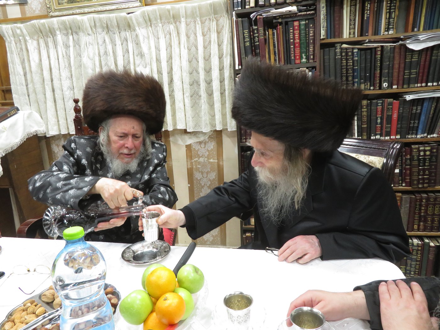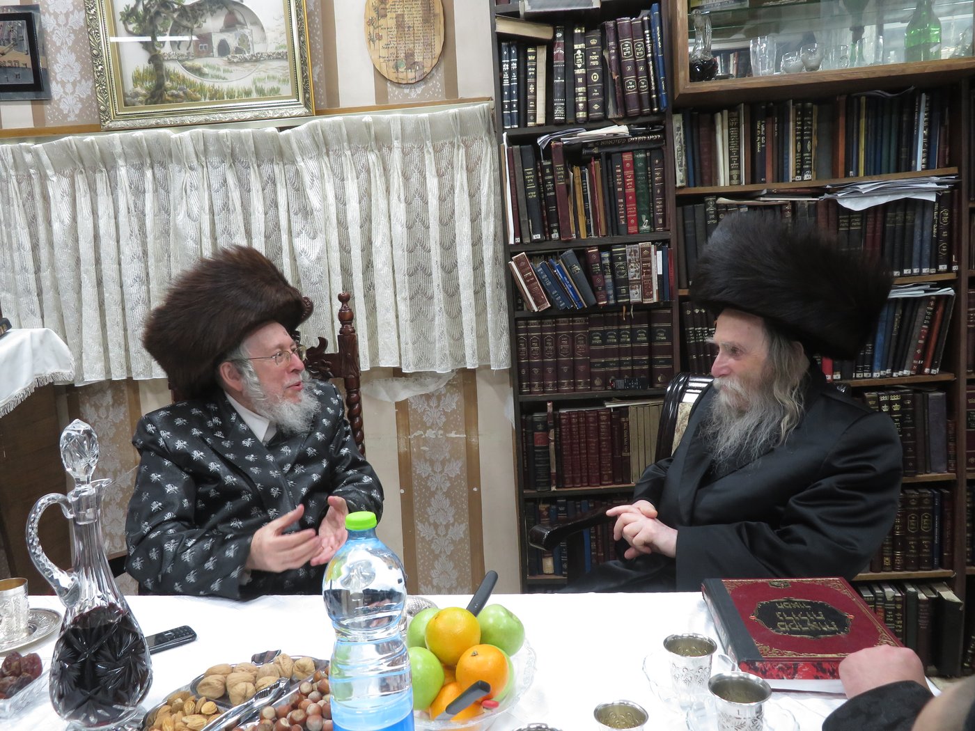האדמו"ר מערלוי הגיע לביקור חג מיוחד במעונו של האדמו"ר מסטראפקוב, שם שוחחו השניים במשך שעה ארוכה בענייני הלכה ובענייני החג. לאחר מכן ערכו השניים 'לחיים' תוך שהם נפרדים לשלום ובברכת א-'גיט מועד' (אנ"ש)