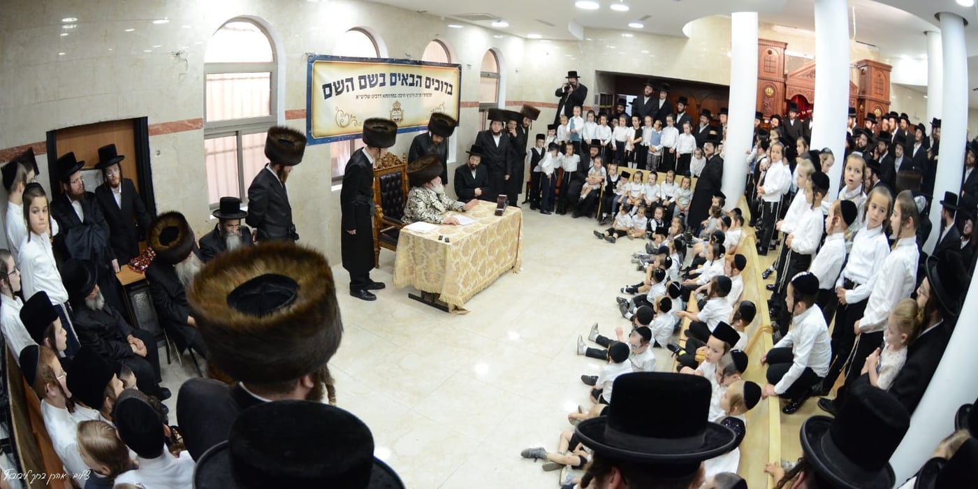 עם הגעתו של הרבי קידמו את פניו ילדי החמד של התלמוד תורה ששרו ניגוני שמחה, ולאחר מכן נשא האדמו"ר דברי חיזוק והדרכה לילדים, ולכל בני הקהילה.