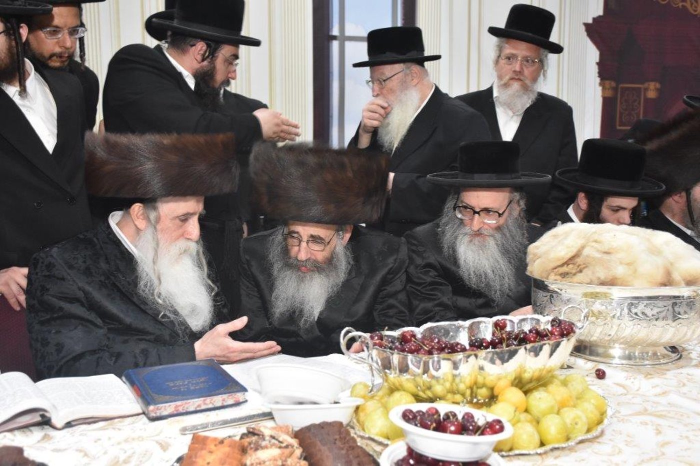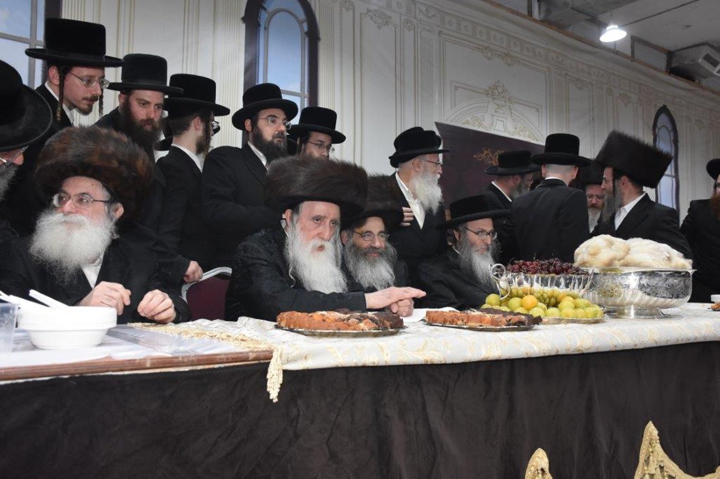 קהל חסידי מכנובקא בעלזא, השתתפו בשמחת ה'תנאים' לנכדת האדמו"ר, בת לחתנו הרה"צ ר' ישכר שלמה הלברשטאם בן האדמו"ר מגארליץ.