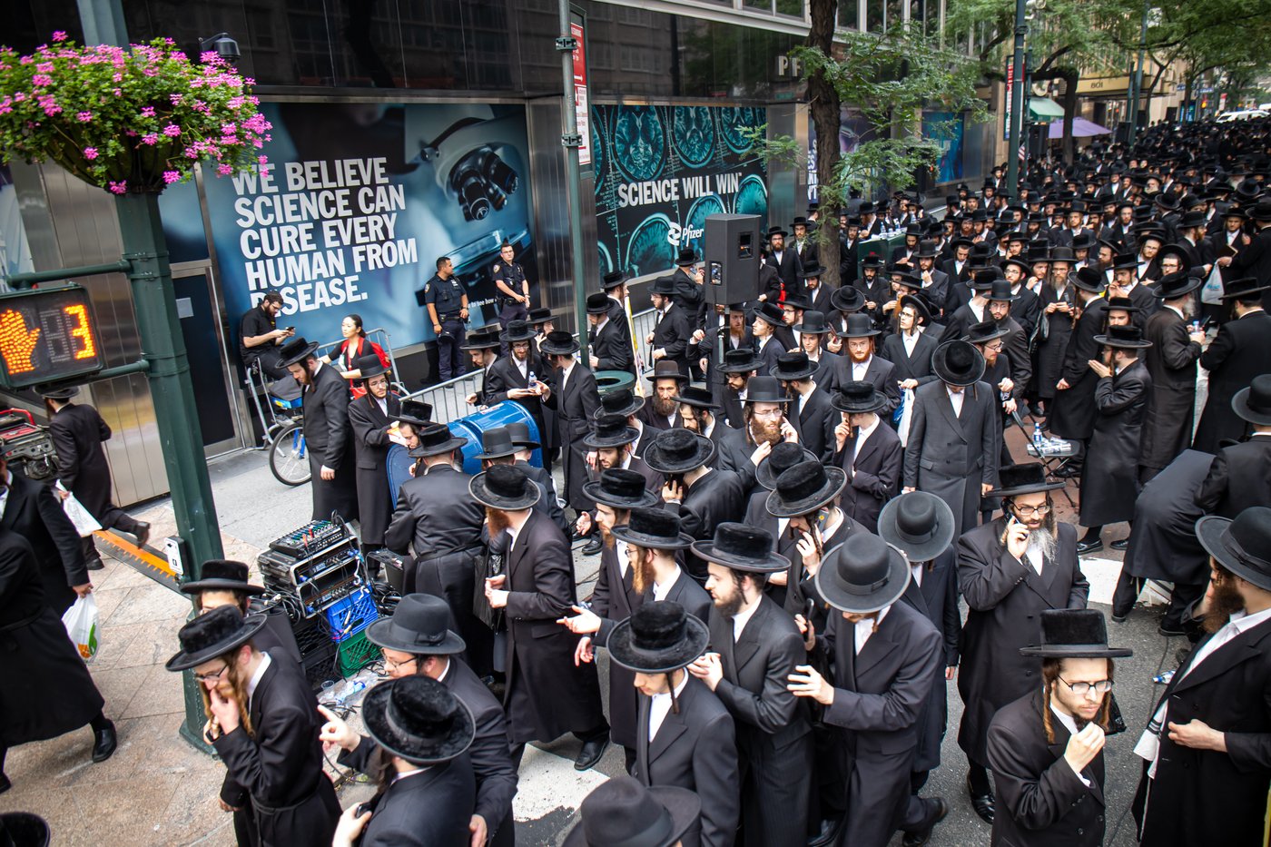 חסידי סאטמר, הגיעו למנהטן והפגינו ביו היתר מול הקונסוליה הישראלית שבמנהטן.