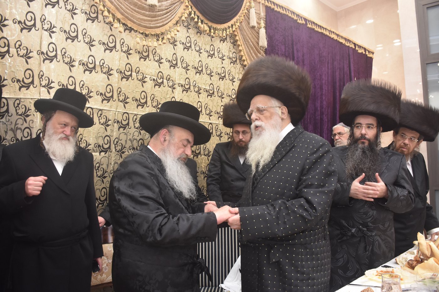 אדמו"רים, רבנים וקהל חסידי בית ספינקא, השתתפו בשמחת השבע ברכות לנכדת האדמו"ר, בת לבנו הרה"צ רבי בעריש וייס, חתן הגה"צ רבי יהושע דומב.