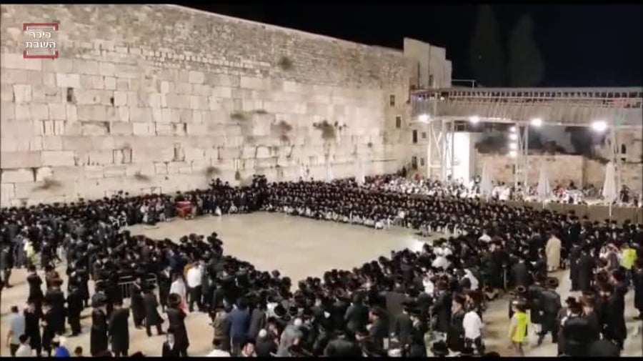 המוני חסידי ויז'ניץ בראשות האדמו"ר הגיעו אמש (רביעי) בשעות הערב לרחבת הכותל המערבי שם הם נשאו תפילה לישועת הכלל והפרט.