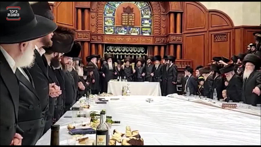 בחצר חסידות סאדיגורה בבני ברק, ערך האדמו"ר את 'טיש' משתה היין, לרגל חג הפורים, בהשתתפות החסידים בהיכל בית המדרש הגדול של החסידות.