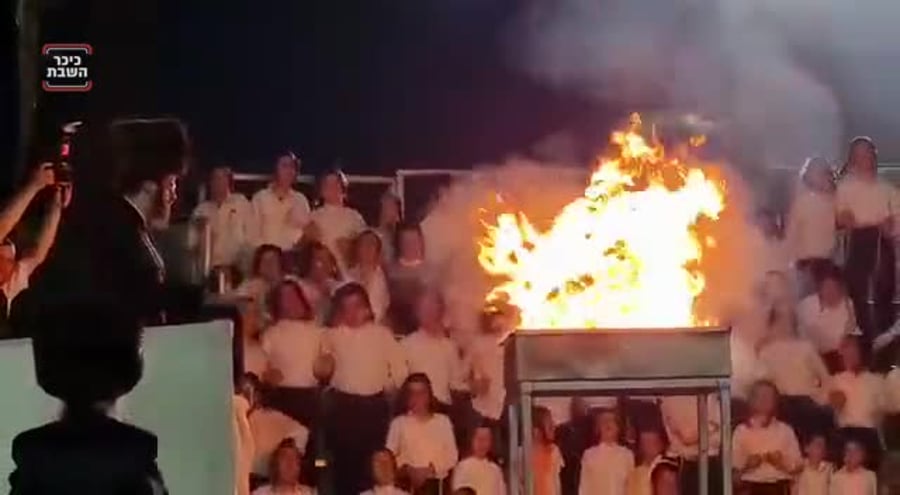 בליל ל"ג בעומר התכנסו מאות חסידי סאדיגורה למעמד ה'הדלקה' בראשות האדמו"ר, שהעלה את האש לכבוד הילולא דרשב"י • ההדלקה כללה שירת ניגוני דבקות וריקודים במשך שעה ארוכה לצד יריית 'חץ וקשת' בידי הרבי • תיעוד (חסידים)