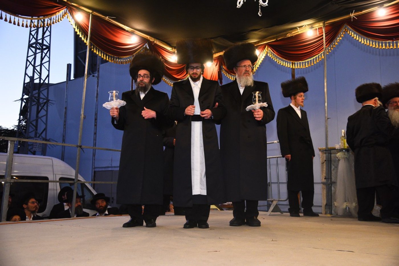 אדמו"רים, רבנים וקהל חסידים השתתפו בשמחת החתונה לבן האדמו"ר מסקולען י"ם, החתן הבחור החשוב אריה לייב, עם הכלה בת הרה"צ רבי משה חיים טווערסקי.