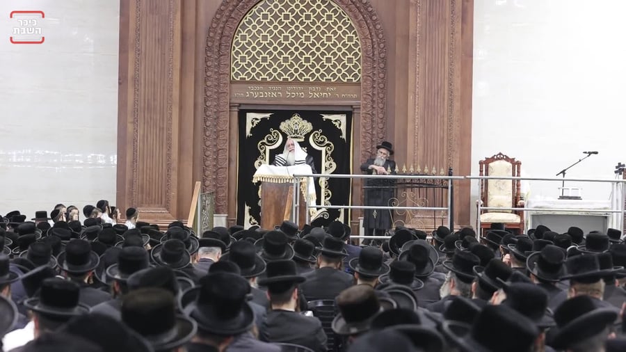 המוני חסידי צאנז התאספו במוצאי שבת בהיכל בית המדרש הגדול בקרית צאנז בנתניה לאמירת הסליחות הראשונות בראשות האדמו"ר.