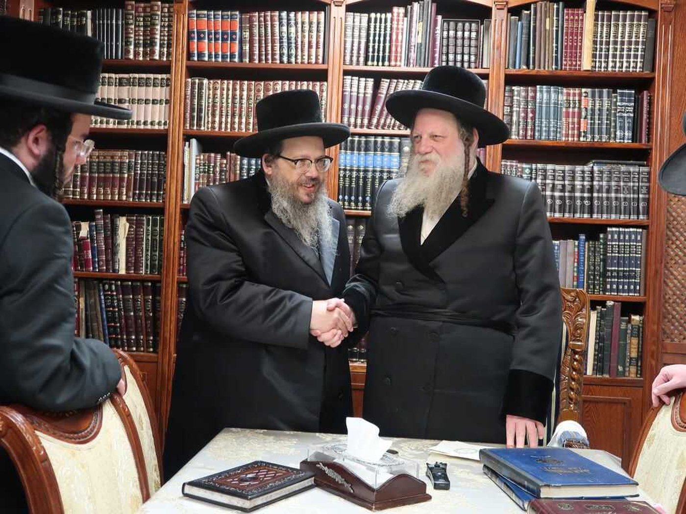 האדמו"ר מבוסטון הגיע בימים האחרונים לביקור בבתיהם של אדמו"רים ורבנים כדי להזמינם לשמחת נישואי בתו. בין היתר ביקר הרבי, אצל האדמו"רים מרחמסטריווקא, מכנובקא, מודז'יץ, סקולען ירושלים, ערלוי וסאדיגורה ירושלים | תיעוד