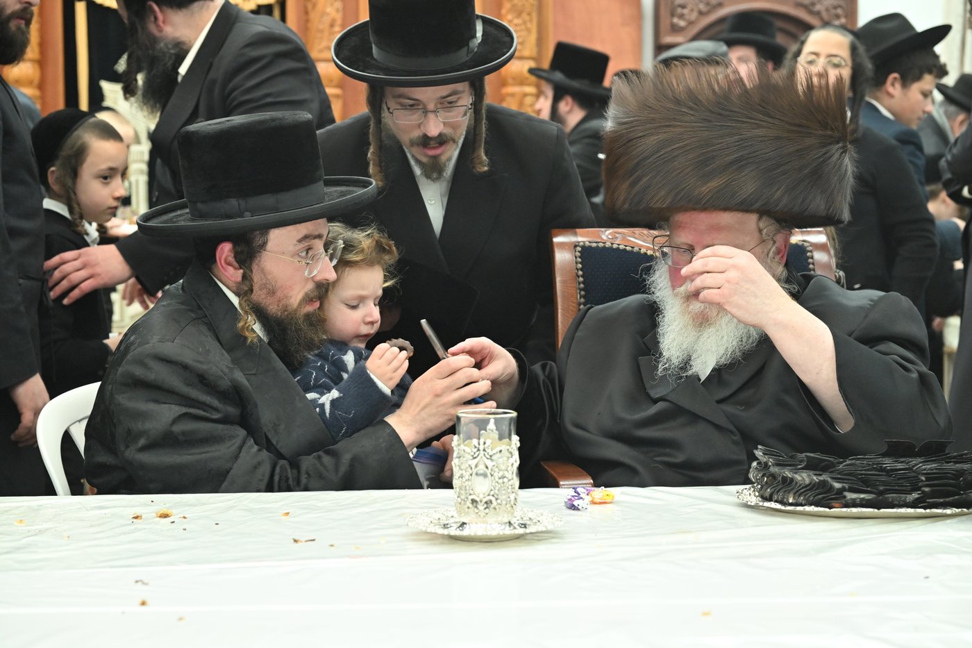 במעון קודשו ברחוב יצחק מאיר הכהן בבני ברק, העלה האדמו"ר מוואסלוי שלהבת האש במנורה העתיקה מירושת אבותיו הק' | לאחר מעמד ההדלקה חילק האדמו"ר מעות חנוכה לחסידים שזכו להסתופף בצילו בשעה נעלה זו (חסידים)