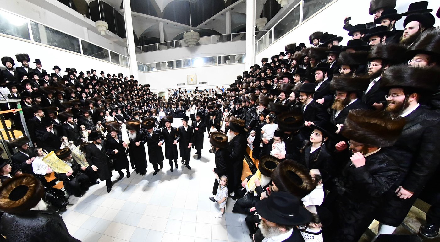 מאות חסידי מודז'יץ השתתפו אמש במעמד ההדלקה שערך האדמו"ר בהיכל בית מדרשו הגדול והחדש בבני ברק | בסיום המעמד נערך טיש לחיים לרגל שמחת בר המצווה לנכדו של האדמו"ר, בן לבנו הרה"ג ר' שמואל אליהו טאוב, חתן הרה"ג ר' אליהו שטרן, אב"ד מושב מירון ברחובות | לאחר מכן עברו הקהל לקבלת מטבעות קודש לברכה (חסידים)