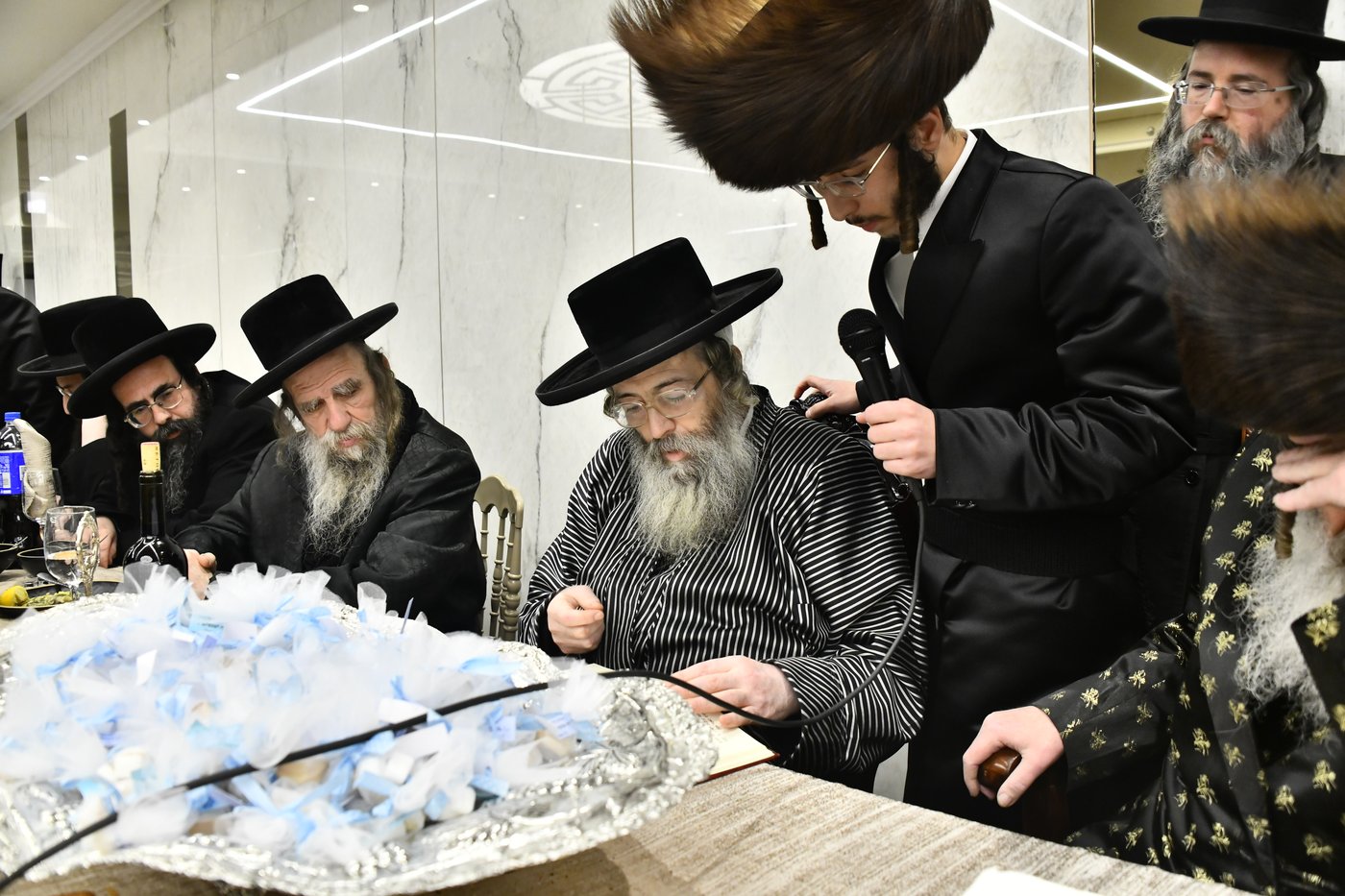עין לא נותרה יבשה היום (ראשון) באולם שמחות מקומי בבני ברק, עת פדה הבנש"ק הצעיר האברך הרב משה נתן נטע לעמברגער, נצר קודש לבית מאקאווא, את בנו בכורו - בלי נוכחות התינוק, מכיוון שנמנע ממנו לראות את בנו.