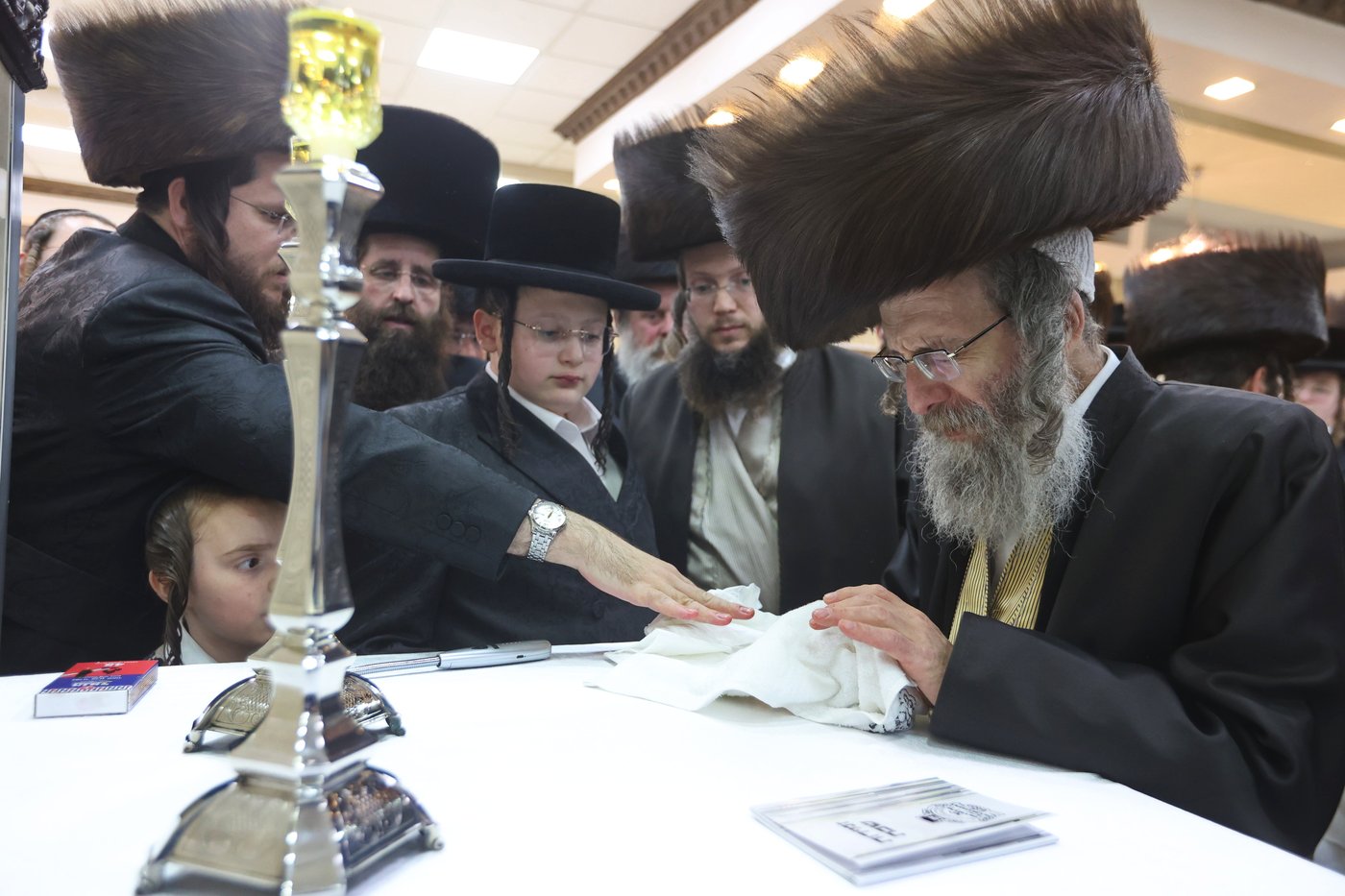 הגה"צ רבי אלימלך בידרמן שהה השבת בבית שמש | את התפילות ועריכת השולחנות ערך בביהמ"ד ויז'ניץ בית שמש, מכיוון שהאדמו"ר שהה בשב"ק זו במאנסי לרגל הילולת אביו האדמו"ר בעל ה'תורת מרדכי' מויז'ניץ מאנסי זצ"ל | בצאת השבת הביאו כבש לשולחנו של המשפיע לזכר המקדש, בתקווה שכמו בימים ההם, כך נזכה השנה להקריב קרבן פסח במועדו | הרה"צ עודד השירה בעוז, כשהכבש נהנה בנתיים משיירי מאכלי סעודה שלישית (חסידים)