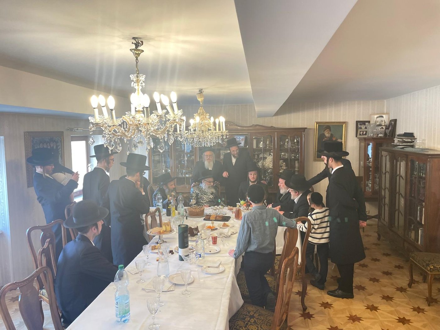 האדמו"ר, העושה דרכו בימים אלו לעיר הבירה לונדון, שם ישהה בשבוע הקרוב לטובת מוסדותיו הק', עצר לאתנחתא קצרה בעיר וערך סעודת ראש חודש לפני נגידי הקהילה המקומית, ובהמשך השתתף במסיבת לחיים לרגל אירוסי בת הנגיד הרבני ר' יהושע פרידמן מחשובי חסידי ויז'ניץ בעיר, עם בנו של הרה"ג ר' שמואל יעקב שטרן, דומ"ץ קהילת 'עץ חיים' בלונדון.
