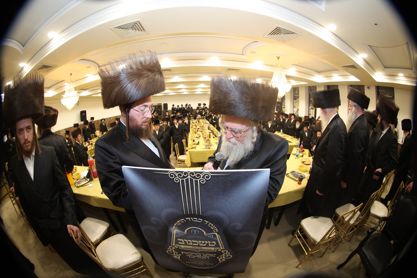אדמו"רים וחסידים בחלוקת פרסים ושבע ברכות בהיכל הישיבה