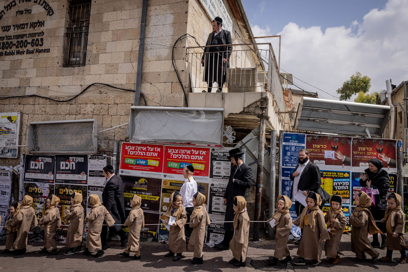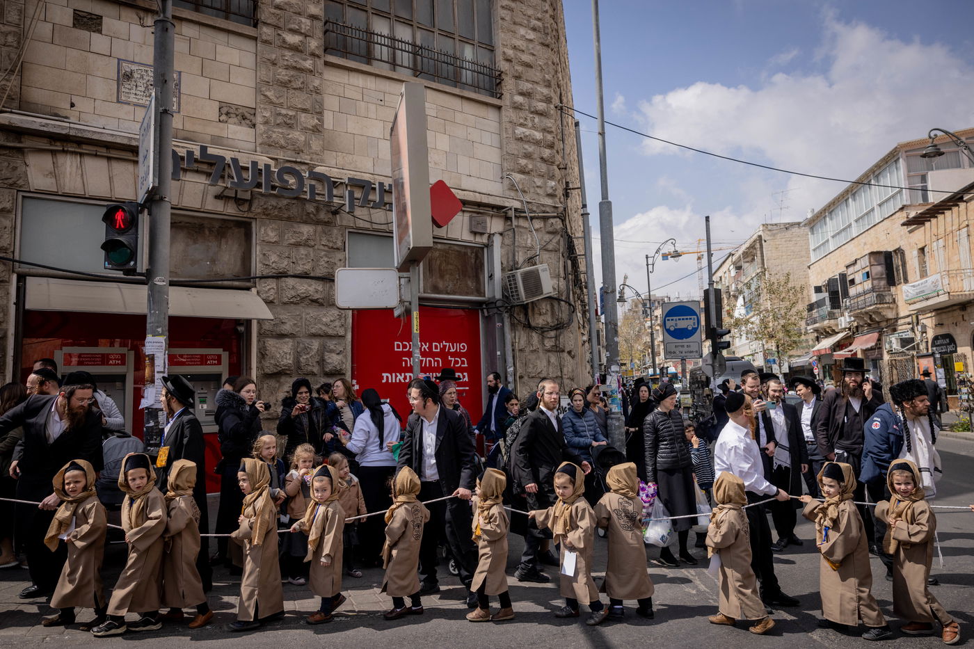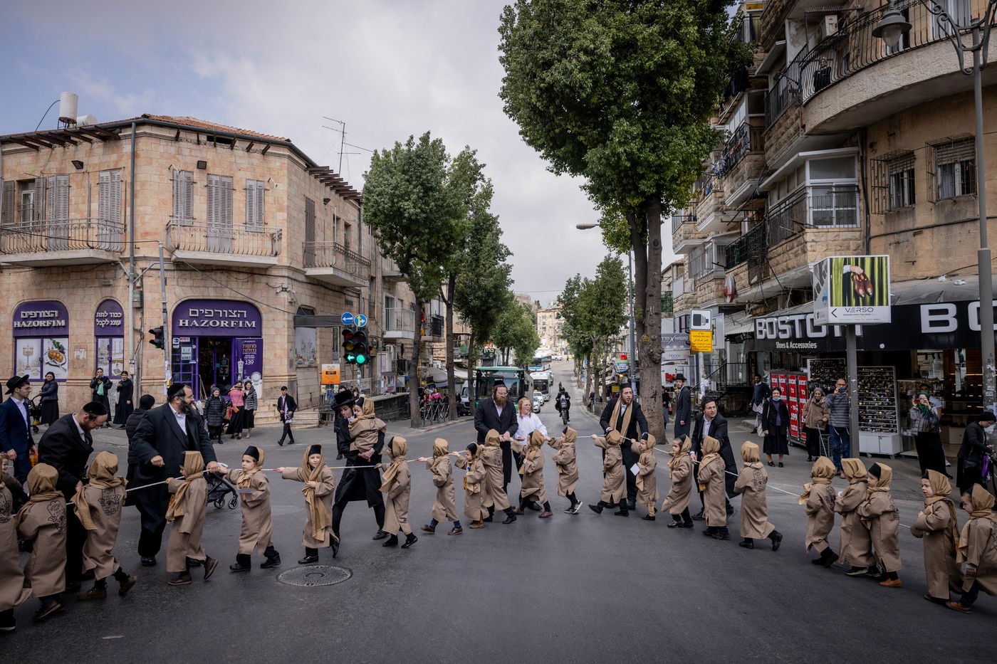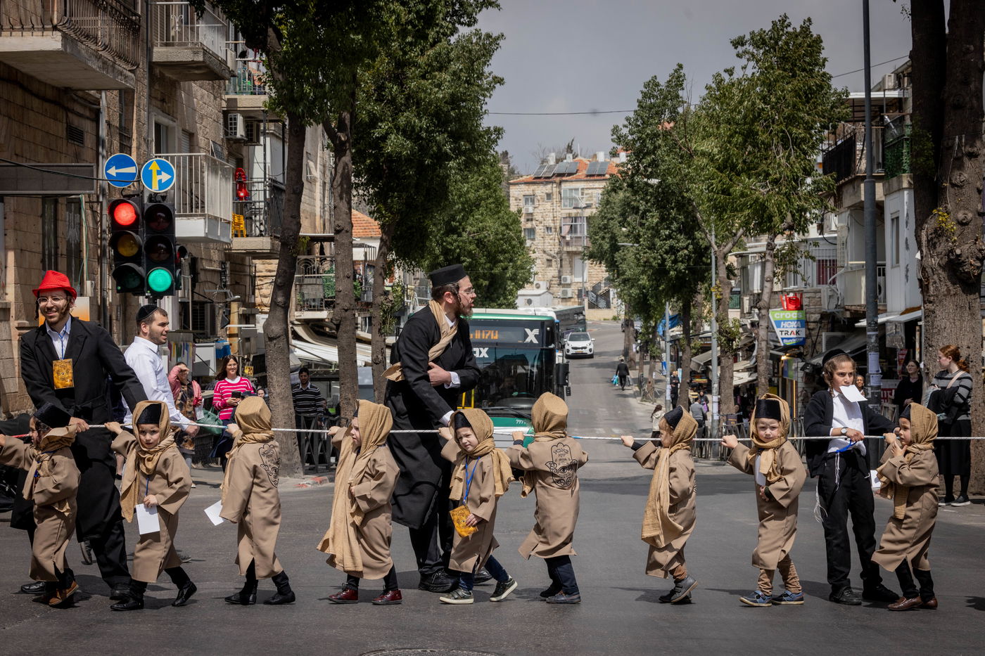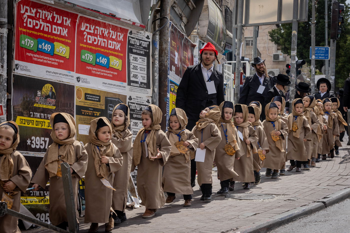עם חן יהודי נסוך על פניהם, צעדו ילדי תלמוד תורה באיאן באזור כיכר השבת בירושלים, לבושים בתחפושת ייחודית ומקורית, המלבוש המיוחדת למקובלים מדורי דורות.
