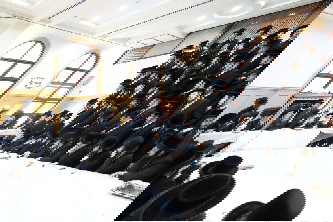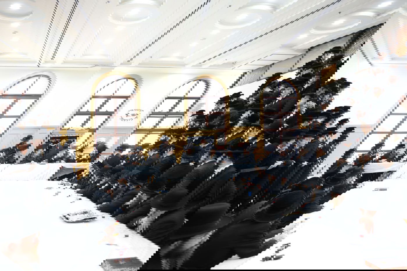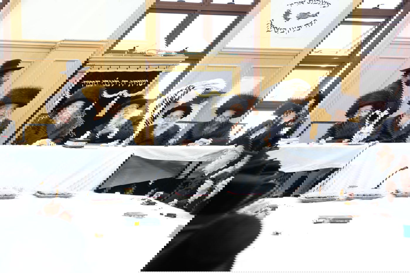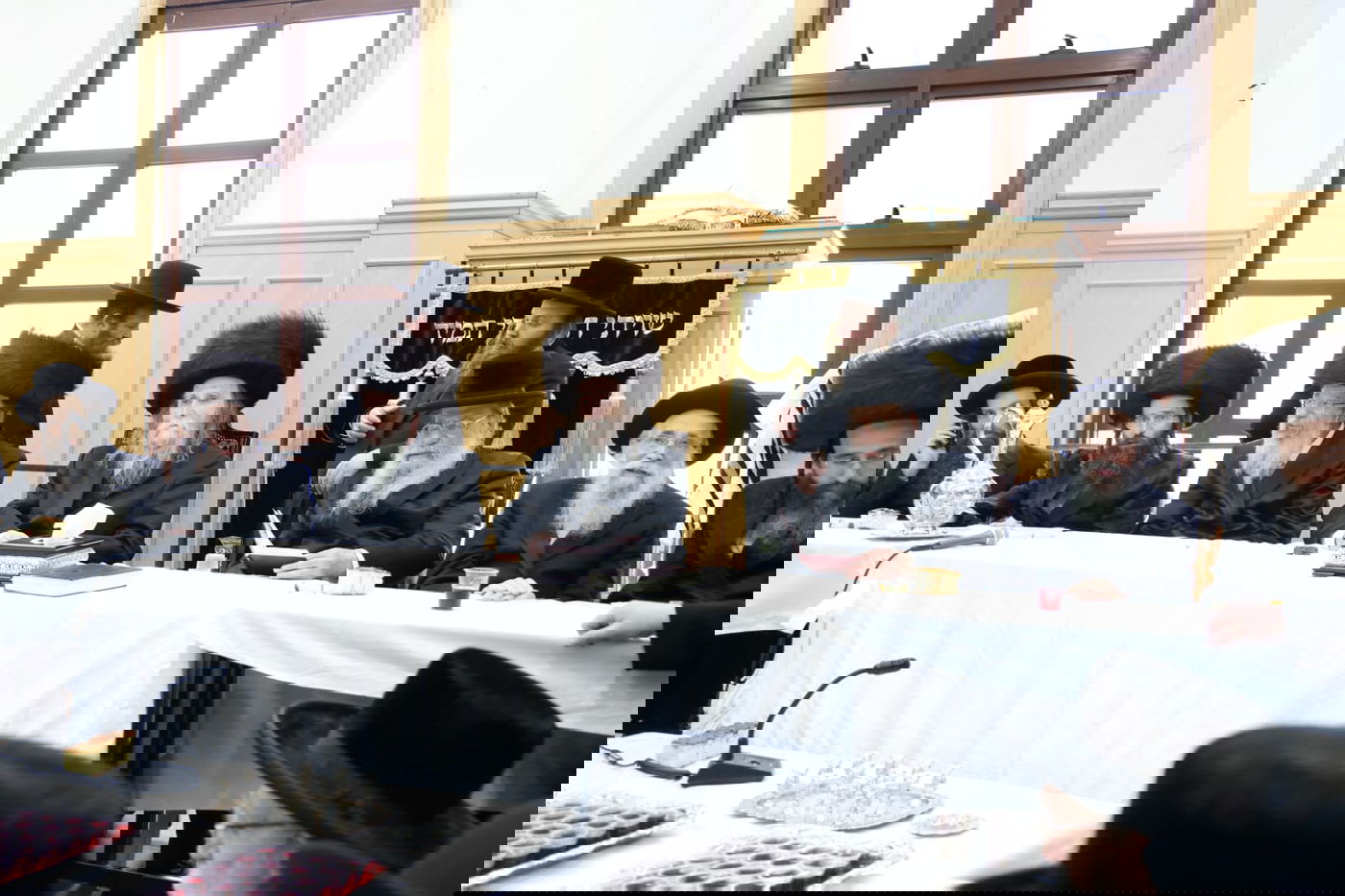 אחר הברית ערך האדמו"ר טיש לחיים ונשא דברות קודש לפני החסידים.