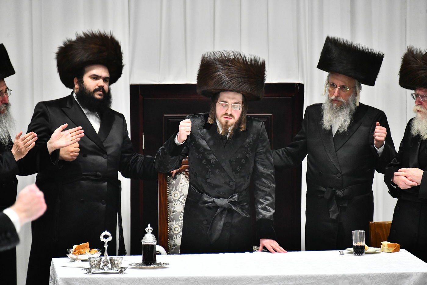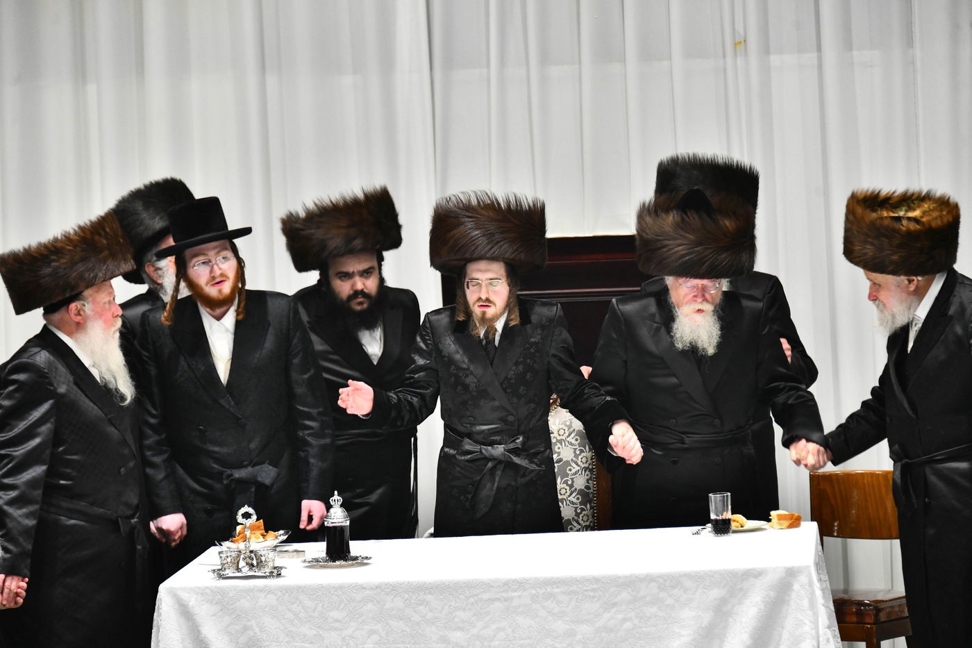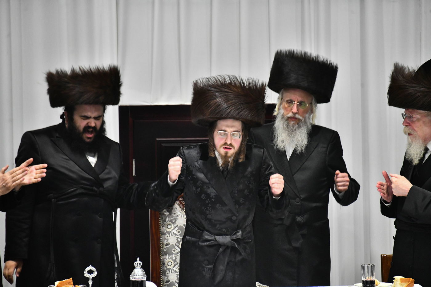 החסידים עלזו כשנהרת שמחה פשטה על פניו של האדמו"ר מסאדיגורה בעריכת השולחן לכבוד חג הפורים | שמחת היום היתה משולבת בשמחת החסידים עם שמחתו הגדולה של האדמו"ר בלידת הבן למזל טוב בבוקר יום הפורים | צפו בגלריה (חסידים)