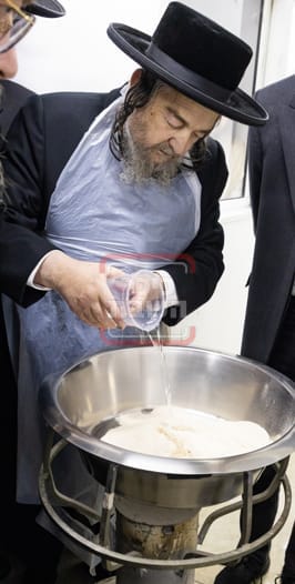 לשם מצות מצווה: הגה"צ רבי יעקב מאיר שכטר מגדולי רבני ברסלב, באפיית מצות לקראת חג הפסח הבעל"ט.