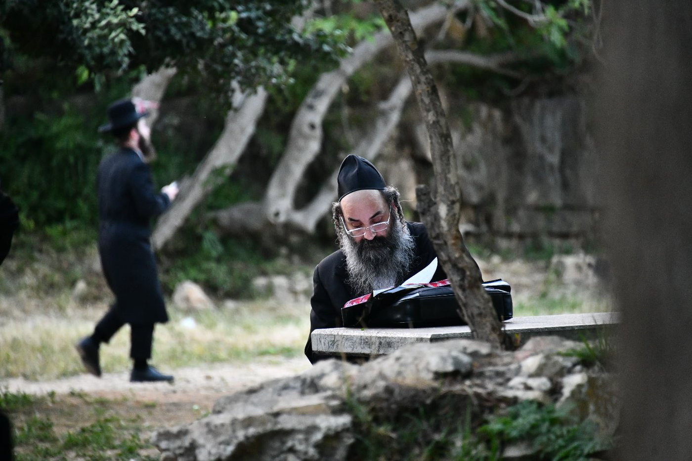 האדמו"ר מגור הגיע לעת ערב, בשקיעתה של חמה לשאיבת מים שלנו לצורך אפיית מצות מצווה בערב פסח | אלפים נכחו במקום | האדמו"ר שאב מבארות המים שבאזור 'עינות תלם' שבהרי ירושלים (חסידים)