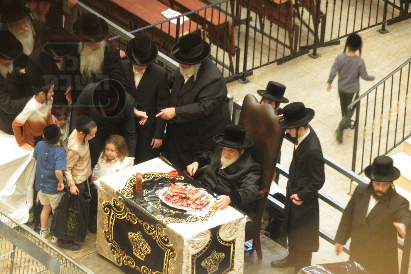 מאות חסידי מודז'יץ השתתפו אמש במעמד ההדלקה שערך האדמו"ר בהיכל בית מדרשו הגדול והחדש בבני ברק | בסיום המעמד נערך טיש לחיים לרגל שמחת בר המצווה לנכדו של האדמו"ר, בן לבנו הרה"ג ר' שמואל אליהו טאוב, חתן הרה"ג ר' אליהו שטרן, אב"ד מושב מירון ברחובות | לאחר מכן עברו הקהל לקבלת מטבעות קודש לברכה (חסידים)