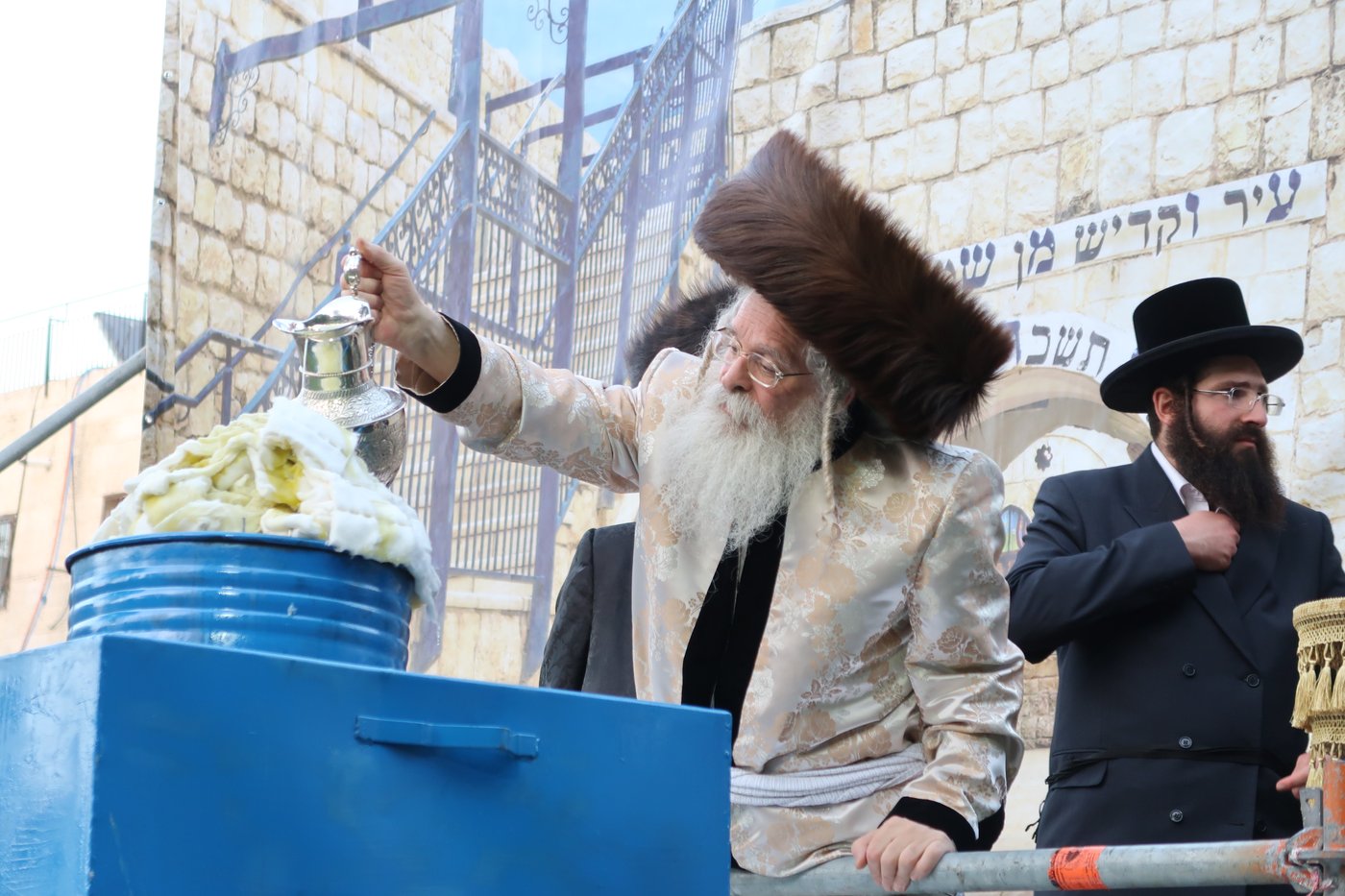 זקן אדמו"רי בורו פארק, הסב יחד עם מחותנו האדמו"ר מוויען, בשמחת הוואכט נאכט, ולמחרת בברית המילה לרגל לידת צאצאם המשותף, רך הנולד בן להרה"ג יהושע כץ, ראש כולל וויען, חתן הגה"צ ראש ישיבת מונקאטש | צפו בתיעוד (חסידים)