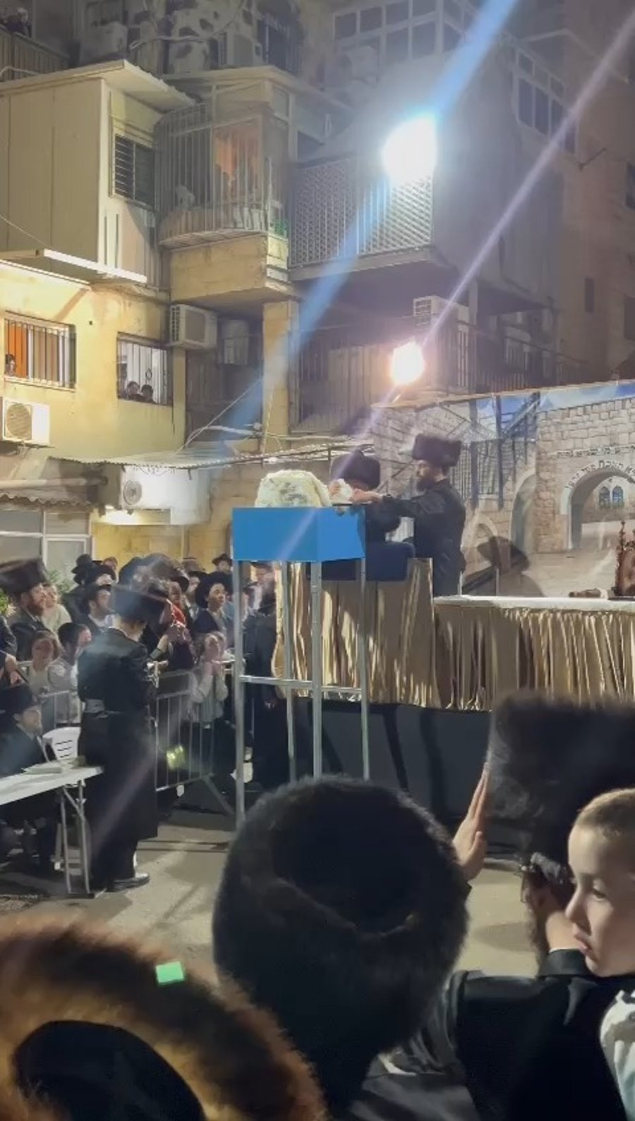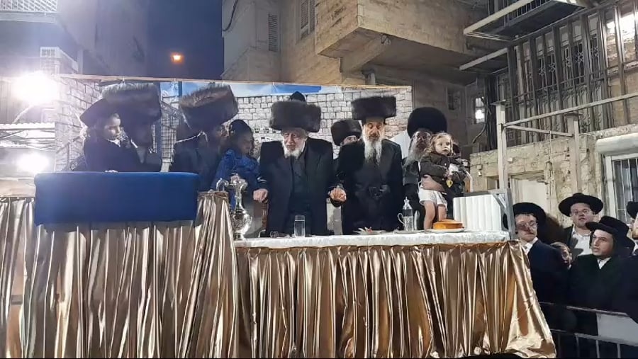ל"ג בעומר בחצה"ק קופיטשניץ | האדמו"ר ערך את מעמד ההדלקה בחצר בית מדרשו | ואחר ההדלקה גזז מחלפות ראש ילדי החסידים, וקם לריקוד נלהב לכבוד התנא האלוקי | (חסידים)