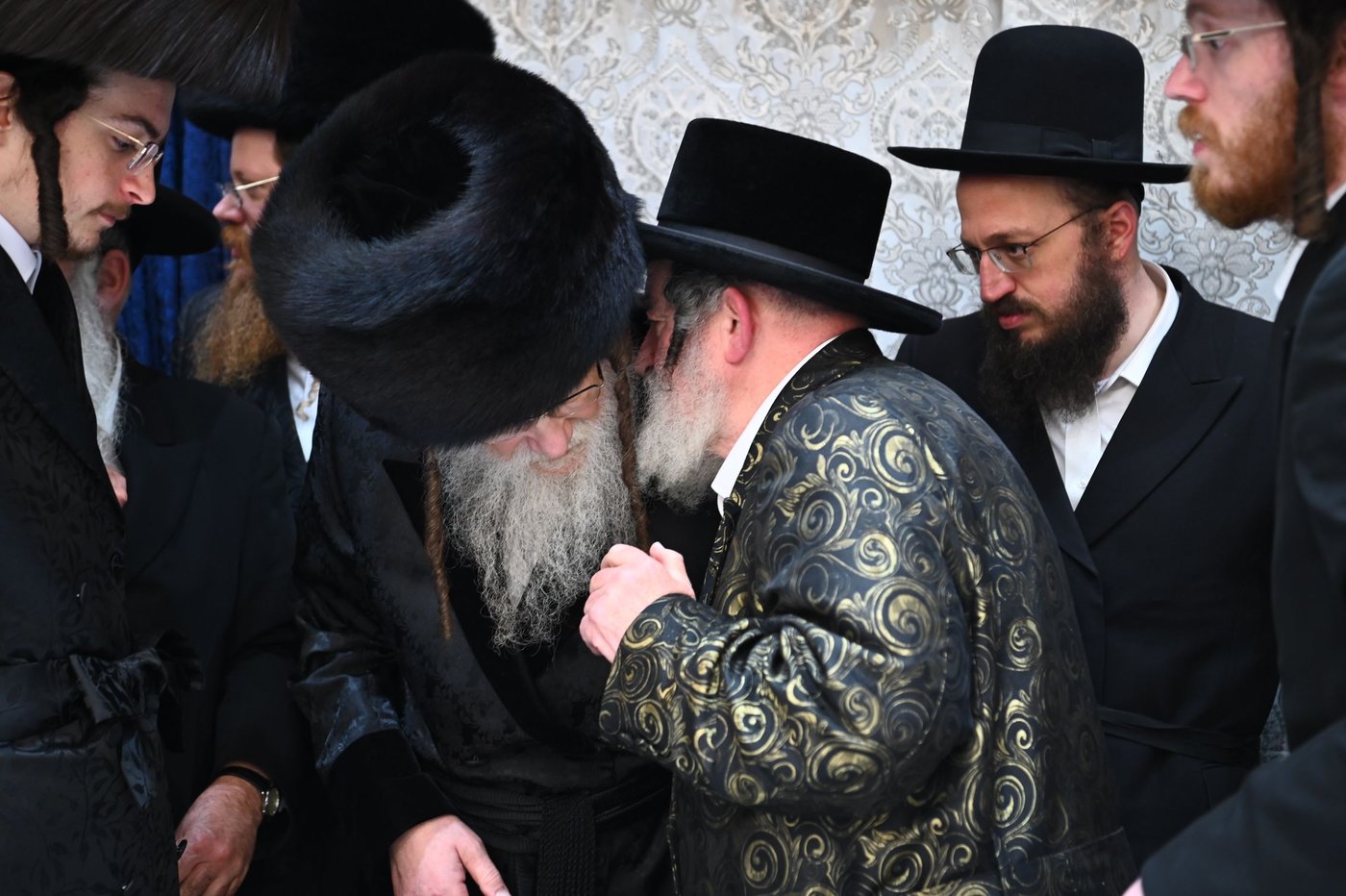 בהיכל ישיבת 'מנחת יצחק' נחוגה ברוב פאר שמחת השבע ברכות לרגל נשואי בן הר"מ הנגיד הרב חיים בעק, עב"ד נכדת האדמו"ר ממודז'יץ | האדמו"ר מויז'ניץ פיאר את השמחה בהשתתפותו, ואף נשא אמרות קודש ברום גדלת הישיבה ע"ש של דודו בעל ה'מנחת יצחק' | האדמו"ר העניק דרון דרשה לחתן 'גביע', ואחר קם לריקוד נלהב עם החתן והמחותנים (חסידים)
