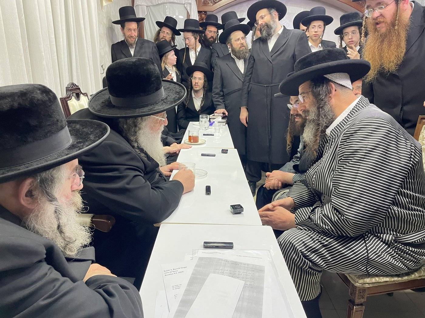 מאות חסידי מודז'יץ השתתפו אמש במעמד ההדלקה שערך האדמו"ר בהיכל בית מדרשו הגדול והחדש בבני ברק | בסיום המעמד נערך טיש לחיים לרגל שמחת בר המצווה לנכדו של האדמו"ר, בן לבנו הרה"ג ר' שמואל אליהו טאוב, חתן הרה"ג ר' אליהו שטרן, אב"ד מושב מירון ברחובות | לאחר מכן עברו הקהל לקבלת מטבעות קודש לברכה (חסידים)