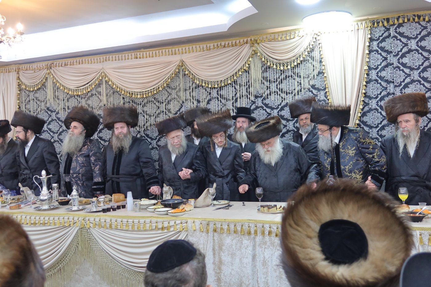 קהל רב של חסידים ואנשי מעשה נטלו חלק בשמחת בית צדיקים, שמחת נשואי בן האדמו"ר מלייפניק עב"ג בת האדמו"ר מדעעש | השמחה נערכה באולמי 'היכלי מלכות' בבני ברק בהשתתפות אדמורי"ם ורבנים מבני המשפחה (חסידים)