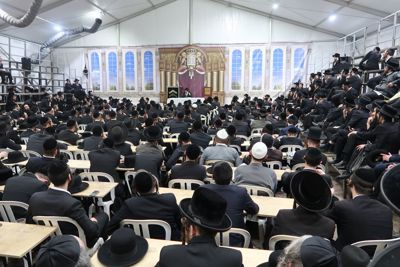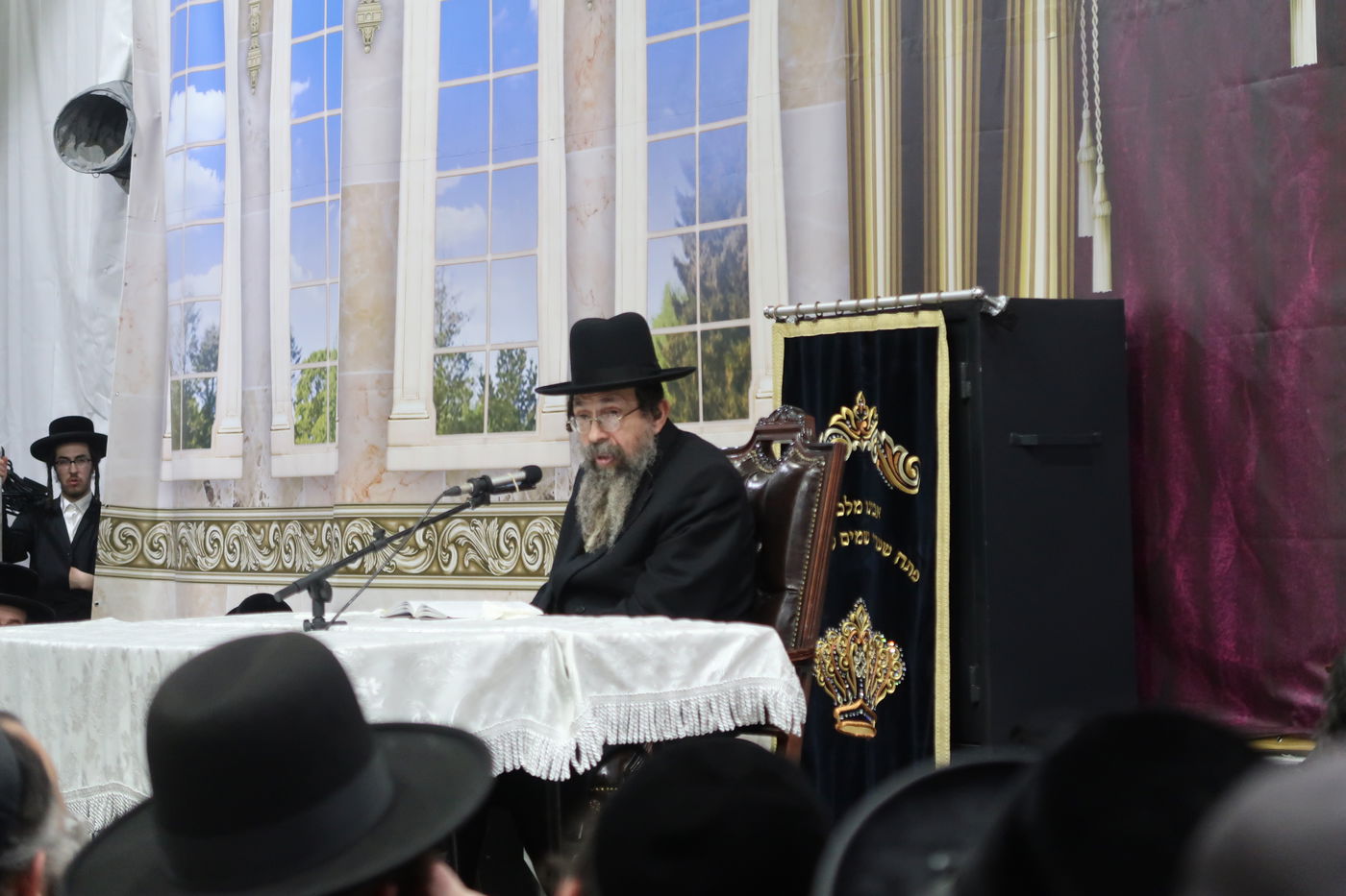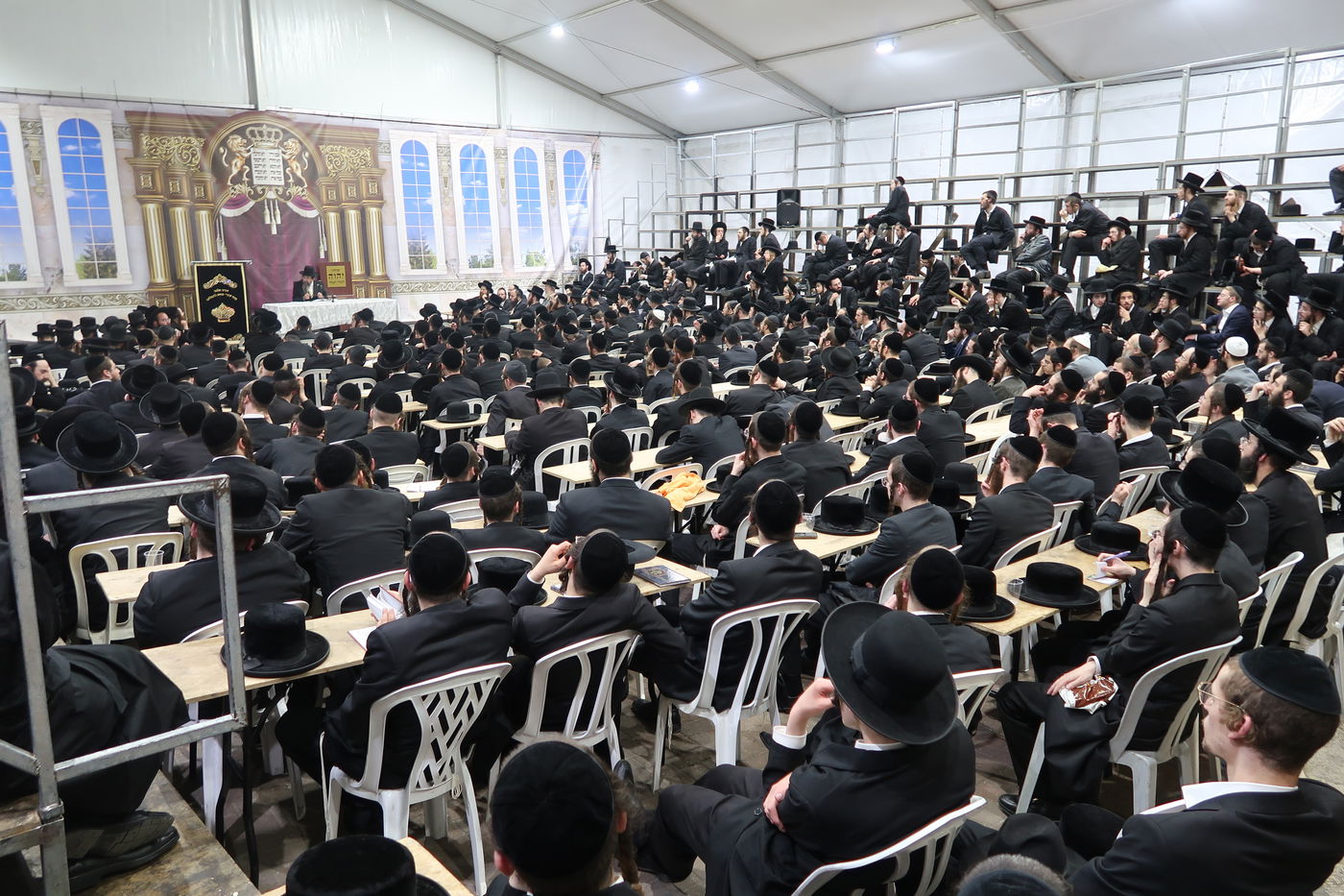 האדמו"ר מתולדות יהודה סטיטשין, הגה"צ רבי מרדכי מנשה זילבר, השוהה בחודשי הקיץ למנוחה בעיה"ק ירושלים, בשיחת מוסר בספר 'מסילת ישרים' לפני תלמידיו וחסידיו, באוהל הענקי שנבנה במיוחד עבור הביקור בחצר הסמינר ברחוב 'מנחת יצחק' בעיר (חסידים)